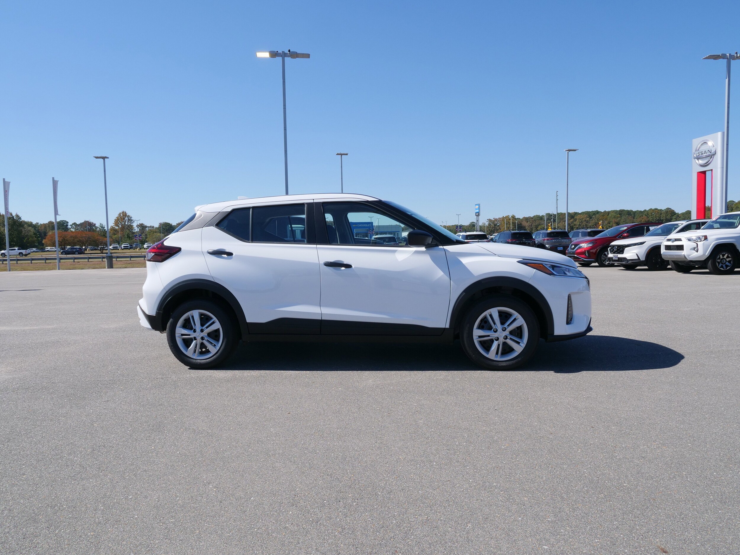 Fresh Powder 2025 Nissan Kicks Play S 1.6L 4-Cylinder DOHC 16V CVT FWD 16 Steel Wheels with Full Covers, 6 Speakers, ABS brakes, Air Conditioning, AM/FM Audio System, AM/FM radio, Apple CarPlay/Android Auto, Auto High-beam Headlights, Blind Spot Warning, Brake assist, Bumpers: body-color, Carpeted Floor Mats with Cargo Mat, Center Armrest with Storage, Cloth Seat Trim with Single Stitch, Driver door bin, Driver vanity mirror, Driver's Seat Mounted Armrest, Dual front impact airbags, Dual front side impact airbags, Electronic Stability Control, Front anti-roll bar, Front Bucket Seats, Front reading lights, Front wheel independent suspension, Fully automatic headlights, Illuminated entry, Knee airbag, Low tire pressure warning, Occupant sensing airbag, Outside temperature display, Overhead airbag, Panic alarm, Passenger door bin, Passenger vanity mirror, Power door mirrors, Power steering, Power windows, Radio data system, Rear Parking Sensors, Rear reading lights, Rear side impact airbag, Rear window defroster, Rear window wiper, Remote keyless entry, Speed control, Split folding rear seat, Sport steering wheel, Steering wheel mounted audio controls, Tachometer, Telescoping steering wheel, Tilt steering wheel, Traction control, Trip computer, and Variably intermittent wipers. Recent Arrival! 31/36 City/Highway MPG Deacon Jones has been PROUDLY Providing only the BEST Pre-Owned Vehicles from Goldsboro to Eastern North Carolina Communities Including Raleigh, Greenville, Wilson, Wilmington and Beyond for over 40 YEARS!