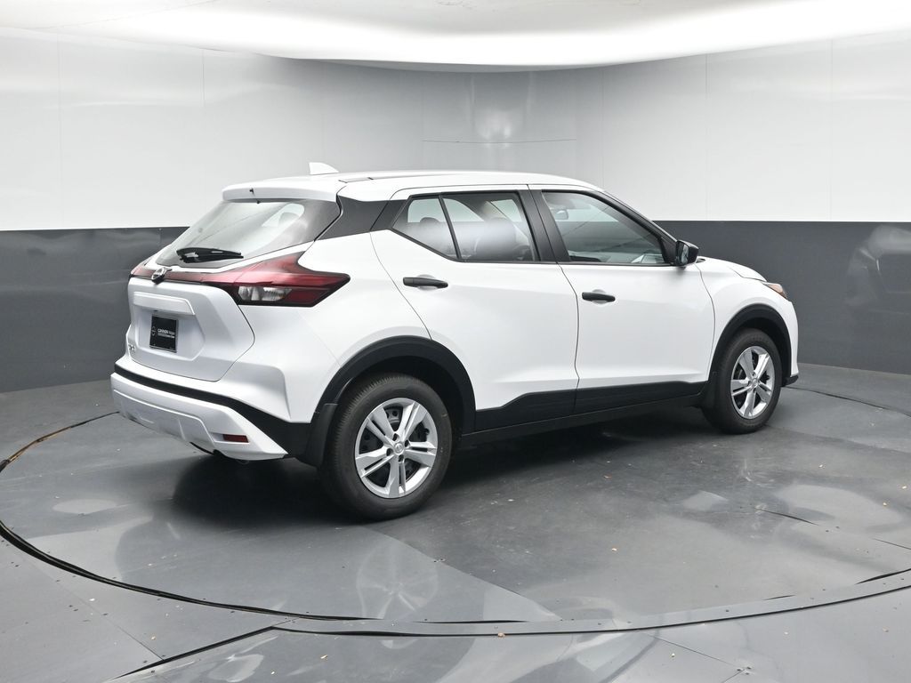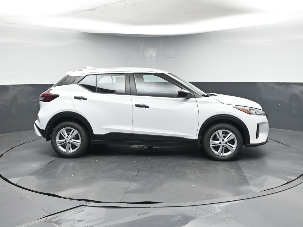 Fresh Powder 2025 Nissan Kicks Play S FWD CVT 1.6L 4-Cylinder DOHC 16V. 31/36 City/Highway MPG.
