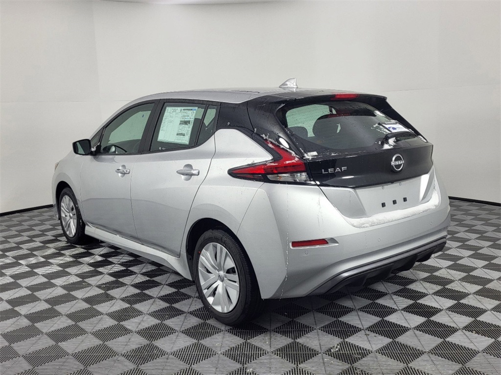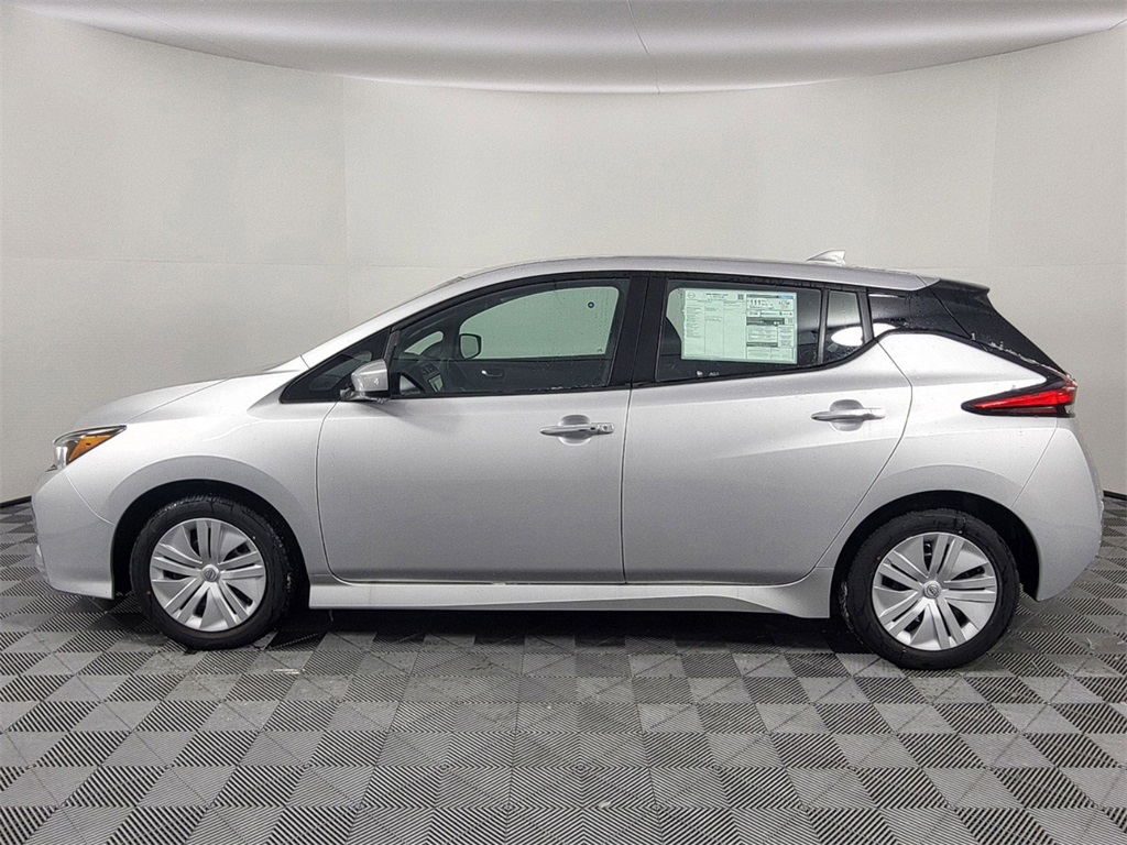 Brilliant Silver Metallic 2025 Nissan Leaf S with single-speed reducer electric motor. Features include auto high-beam headlights, automatic temperature control, and rear parking sensors.