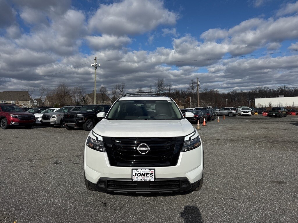 White Pearl 2025 Nissan Pathfinder SV 4WD. All prices plus tax, tags, $800 dealer processing fee (Not required by law), destination, and any dealer installed options. Internet prices include all National Nissan rebates and coupons. Customers may qualify for additional Nissan rebates. Special APR's like 0% are available but may not be combined with internet pricing. Customers must finance 100% of the purchase with NMAC at the standard APR to receive the applicable discounts and Nissan rebates included in internet pricing. Other financing programs are available, see dealer for details. All vehicles subject to prior sale. Internet pricing is for in stock vehicles only. While every attempt has been made to ensure the accuracy of the data displayed, the Dealership is not responsible for any errors or omissions. Images may not represent actual vehicle. See dealer for details. Prices do not include tax, state tag and title fees, or $800 dealer process fee (not required by law), destination/freight, and any other dealer installed accessories. Price shown includes the largest rebate that all customers qualify for. Please contact our sales team to answer any questions you may have. While we do everything to make sure our online prices are accurate, we are not responsible for pricing errors or mistakes. If an error is brought to our attention, we do everything possible to correct it immediately.