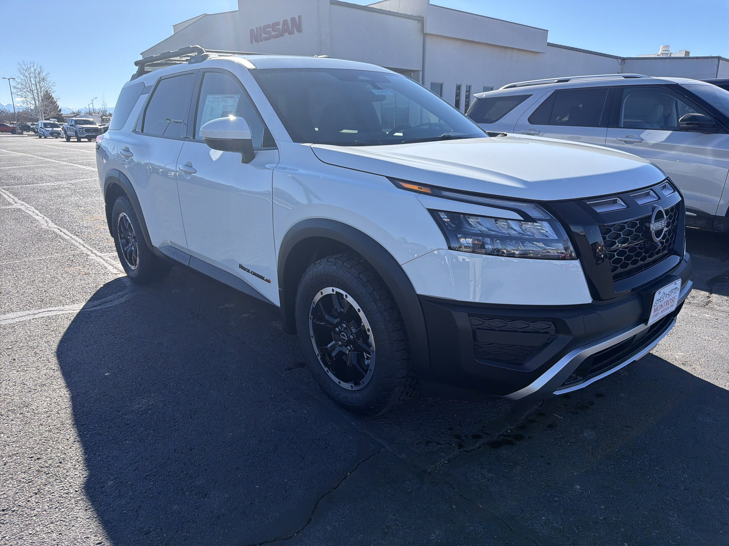 Glacier White 2025 Nissan Pathfinder Rock Creek 4WD 9-Speed Automatic 3.5L V6 DOHC 4WD. Recent Arrival! Price includes: $5000 - Nissan Customer Cash. Exp. 01/05/2026.