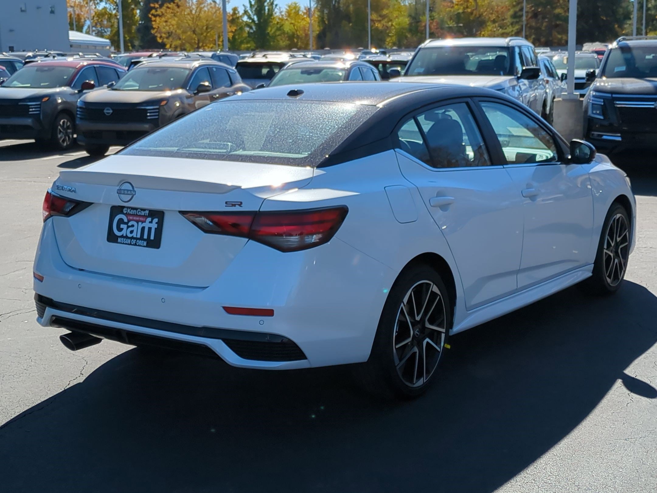 Aspen White Tricoat/Super Black 2025 Nissan Sentra SR InStock FWD CVT with Xtronic 2.0L I4 DOHC Garff Care, Clean Carfax, CVT with Xtronic, Sport Cloth, 2-Tone Non Premium Paint, 2-Tone Premium Paint, Premium Paint. Recent Arrival! 30/38 City/Highway MPG. All vehicles come with complimentary GarffCare! (Complimentary Towing along Wasatch Front, Roadside Assistance, Complimentary Annual State Safety Inspection, Flat Tire Repair, and Car Wash with every Service Visit)