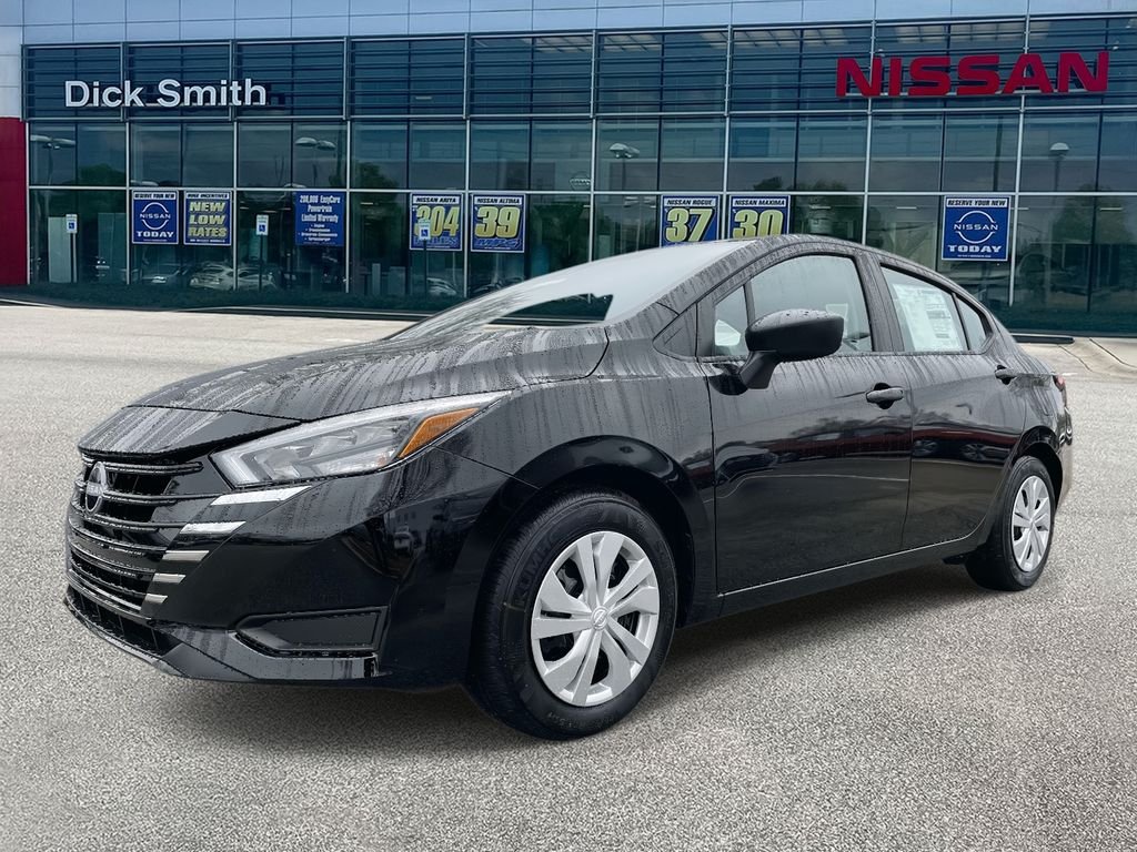 Super Black Metallic 2025 Nissan Versa 1.6 S FWD CVT 1.6L I4 DOHC 16V. Call 803-653-3776 to schedule a test-drive today! 32/40 City/Highway MPG.