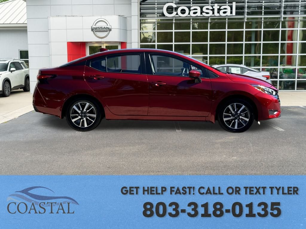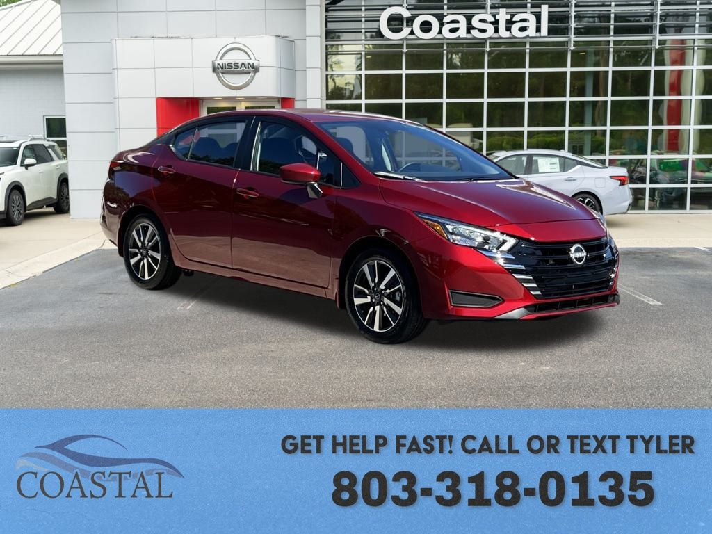 Scarlet Ember Tintcoat 2025 Nissan Versa 1.6 SV FWD CVT 1.6L I4 DOHC 16V. Recent Arrival! 32/40 City/Highway MPG. Interested? Text or Call Tyler: 803-318-0135.