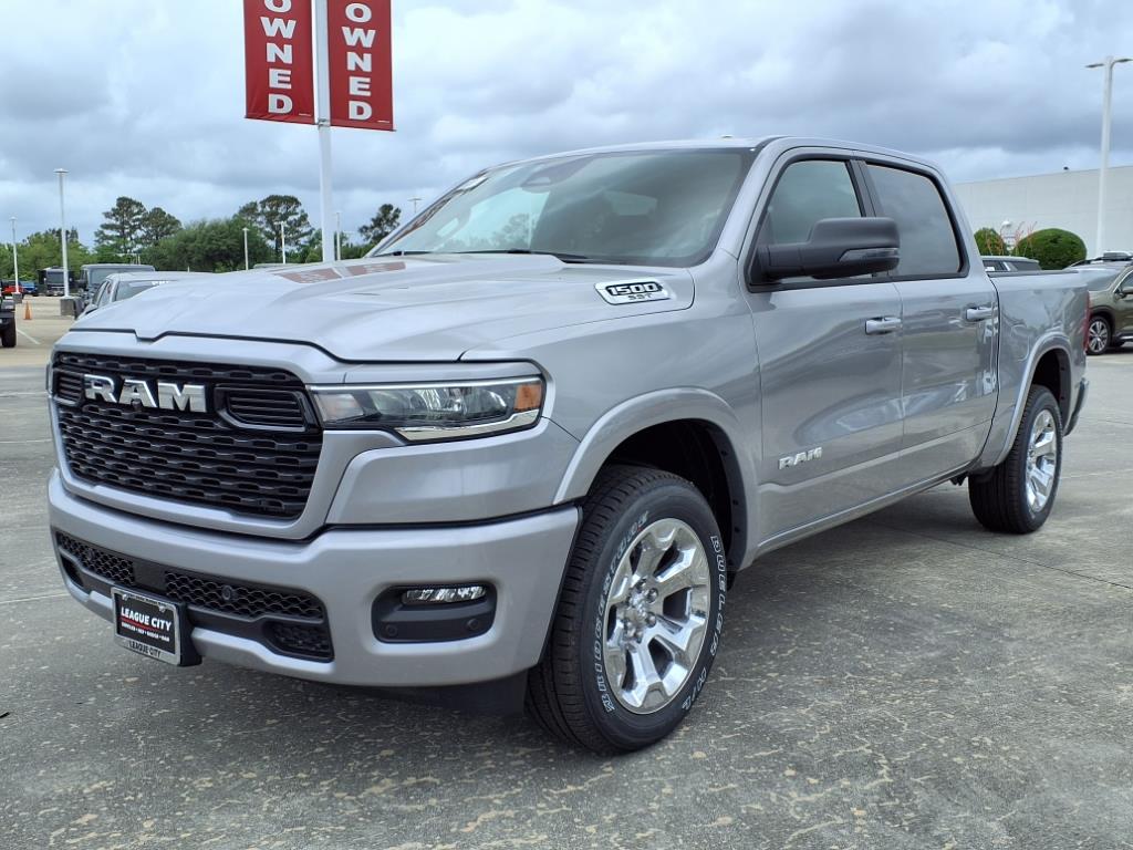 The 2025 Ram Crew Cab 1500 Big Horn/Lone Star offers advanced features like a touch screen display, Bluetooth audio connection, blind spot sensor, hill start assist, and Apple CarPlay readiness. Its durable billet silver metallic clearcoat exterior and plush leather interior ensure comfort.