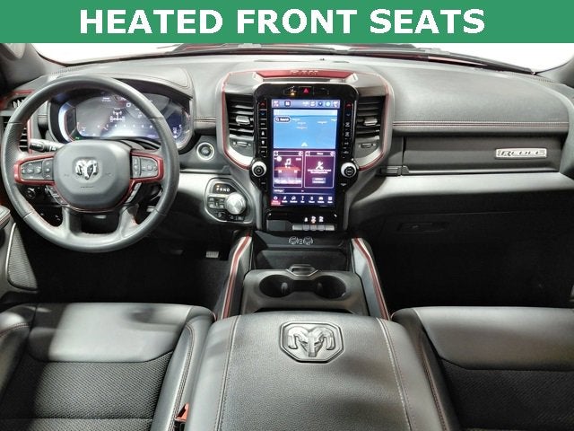 Recent Arrival! Tow Package, Nav | Navi | GPS | Navigation, 4WD | 4 Wheel Drive, Heated Seats, Rearview Back Up Camera, Remote Start, Auto Power-Folding Mirrors, Auto-Dimming Exterior Driver Mirror, Black Premium Power Mirrors, Convex Wide-Angle Exterior Mirror Insert, Exterior Mirrors Courtesy Lamps, Exterior Mirrors w/Heating Element, Exterior Mirrors w/Supplemental Signals, GPS Navigation, Heated steering wheel, Navigation System, Power Adjustable Pedals, Quick Order Package 21W Rebel, Radio: Uconnect 5 Nav w/12.0 Display, Rear Window Defroster, Rebel Level 1 Equipment Group, Remote Tailgate Release, Wheels: 18 x 8.0 Painted Mid-Gloss Black, Wireless Charging Pad. Flame Red Clearcoat 2025 Ram 1500 Rebel 4D Crew Cab 4WD 3.0L I6 8-Speed Automatic.
