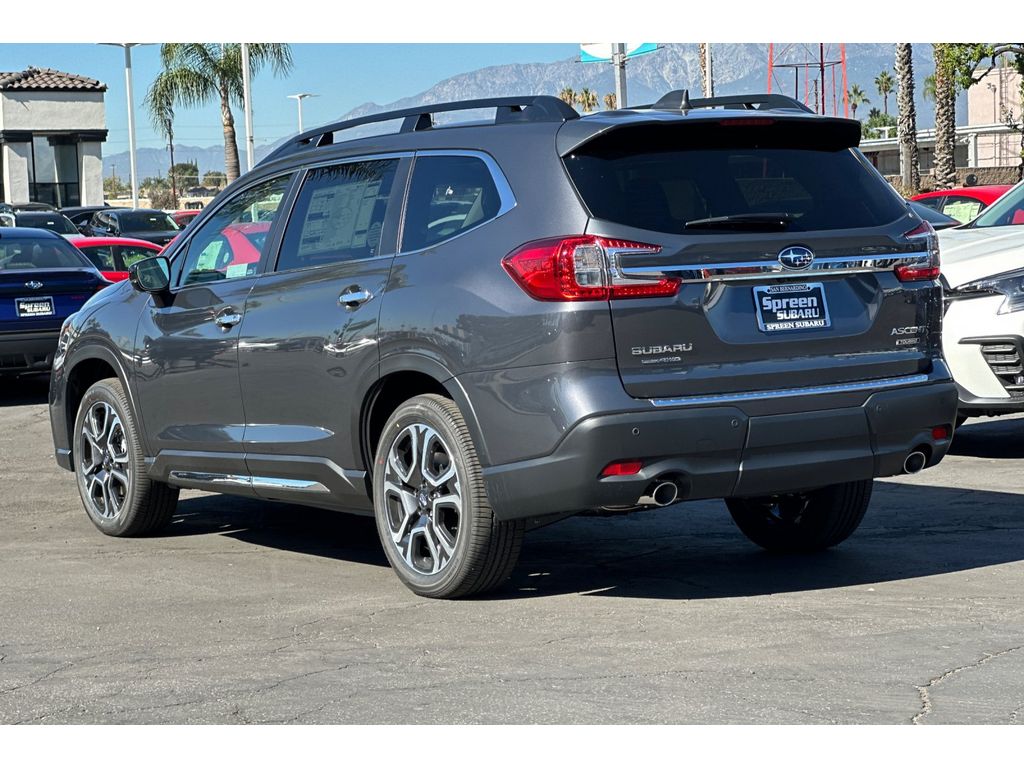 2025 Subaru Ascent Touring AWD — exceptional value in San Bernardino, CA. This premium three-row SUV pairs Subaru's efficient 2.4L turbocharged 4-cylinder engine with Symmetrical All-Wheel Drive for confident handling and impressive fuel economy on city streets and mountain roads. Thoughtfully equipped for comfort and convenience, the Touring trim includes Navigation to guide every route, Remote Start for climate-controlled cabin readiness, and a Heated Steering Wheel for cold mornings. Safety-minded Subaru features are abundant: Adaptive Cruise Control helps maintain safe following distances on highway drives, while the Back-Up Camera enhances rear visibility during parking and tight maneuvers. The interior combines upscale materials with versatile seating and cargo solutions, making the Subaru Ascent Touring ideal for family trips, commuting, and outdoor adventures. Located in San Bernardino, CA, this 2025 Subaru Ascent Touring is competitively priced and listed as the best price available locally — a smart choice for buyers seeking top-tier safety, technology, and AWD confidence without overspending. Schedule a test drive to experience the responsive powertrain, user-friendly infotainment, and thoughtful driver aids firsthand. Financing options and dealer-assisted services are available to streamline purchase and ownership. Contact us for a personalized quote or to reserve this well-equipped 2025 Subaru Ascent Touring in San Bernardino today.