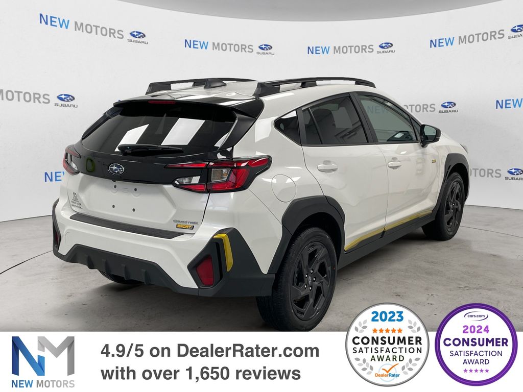 What helps set us apart from all the rest at New Motors is our New Motors Pledge package. This includes the following for every new and used vehicle purchased: * Warranty Forever program on all purchased Subaru vehicles (lifetime powertrain warranty) * Receive free inspections on all leased Subaru vehicles (excludes emissions and sticker fees) * 40+ Loaner vehicles * 10% off Accessories (1st year) * Free car wash every service visit * Multi-point vehicle inspection * Free Alignment check with every service visit * Courtesy Shuttle * 2 dedicated delivery/product specialists on staff * Complimentary High Speed Wi-fi Internet * Complimentary beverages and snacks * At New Motors we make our pledge to you to make sure that you're back on the road with affordability, reliability, and style. For more information give us a call at (814) 868-5516. Crystal White Pearl 2025 Subaru Crosstrek Sport 2.5L 4-Cylinder DOHC 16V 27/33 City/Highway MPG