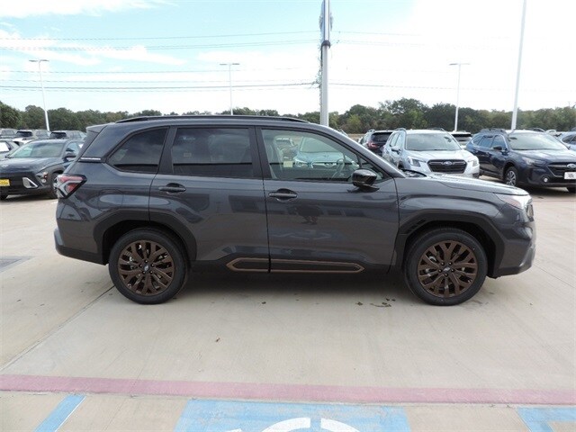 Magnetite Gray Metallic 2025 Subaru Forester Sport AWD Lineartronic CVT 2.5L 4-Cylinder DOHC 16V. Sterling Subaru, 241 N. Earl Rudder Frwy, Bryan Tx 77802. 25/32 City/Highway MPG. Let the team at Sterling Subaru introduce you to an entirely new kind of car-buying experience. This 2025 Subaru Forester Sport in Magnetite Gray Metallic comes with the following features.