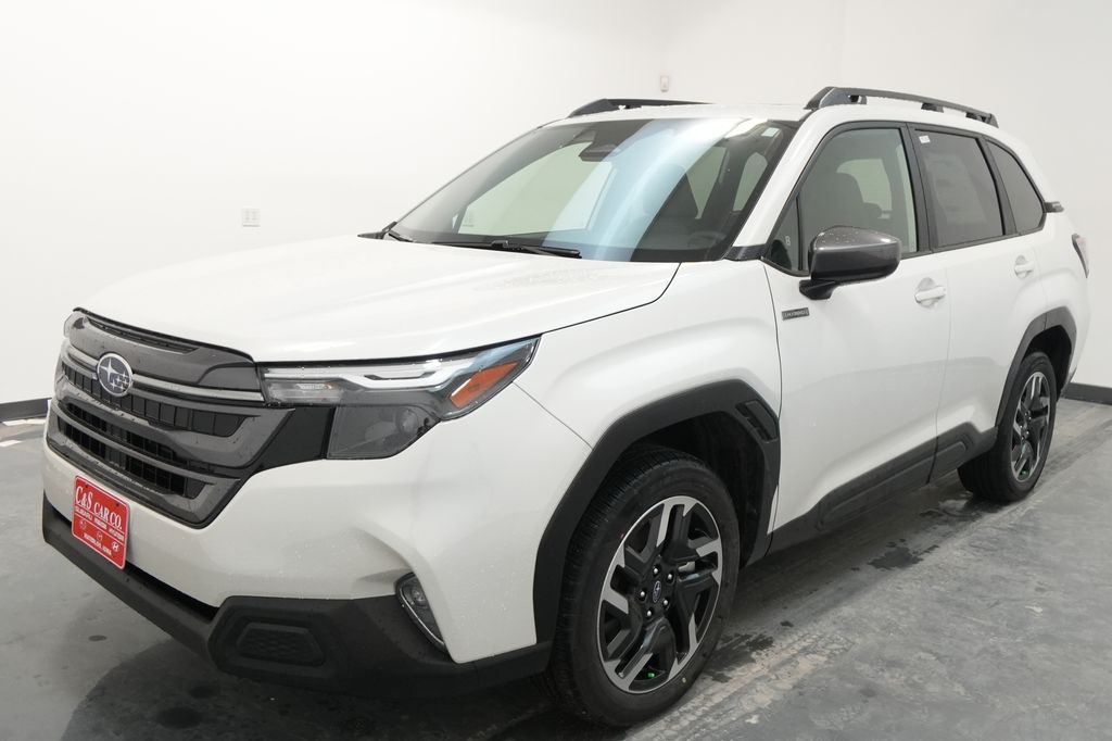 Crystal White Pearl 2025 Subaru Forester Hybrid Premium AWD Lineartronic CVT 2.5L 4-Cylinder DOHC 16V. Recent Arrival! 35/34 City/Highway MPG.