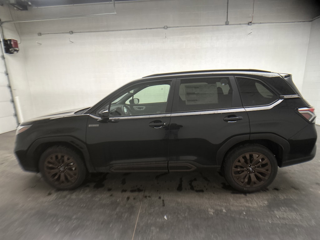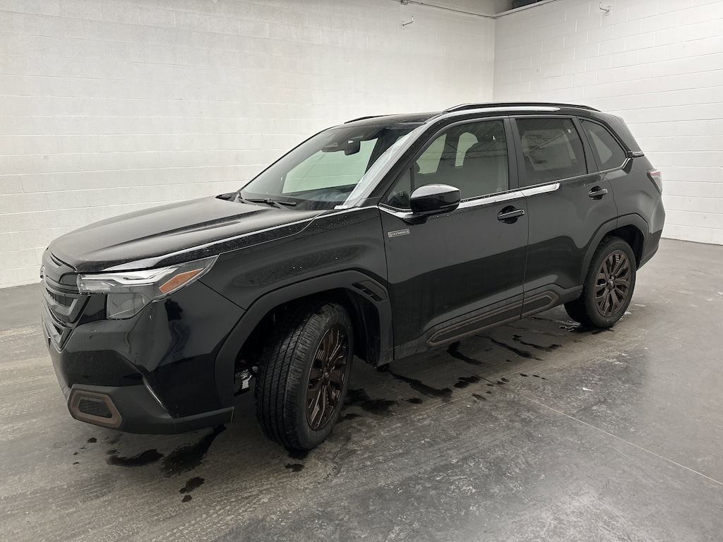 This is a brand new 2025 Subaru Forester Sport Hybrid SUV that just arrived - finished in Crystal Black Silica with a Gray Sport StarTex interior accented by bronze stitching. With just 5 miles on the odometer, this Forester is completely untitled and includes the full factory warranty, giving you the peace of mind that comes with being the very first owner. Under the hood is Subaru's 2.5L H-4 BOXER engine paired with a hybrid electric drive system, delivering impressive efficiency with an estimated 35 MPG city and 34 MPG highway. Power is sent to all four wheels through Subaru's 1-Speed CVT and legendary Symmetrical All-Wheel Drive, giving you confident traction in rain, snow, dirt roads, and everything in between. This is a hybrid built for real life, not just fuel savings. The Sport Hybrid trim is made for drivers who want versatility with a bold edge. The raised, sport-tuned suspension and 8.7 inches of ground clearance make weekend adventures easy, while 19-inch bronze-finish alloy wheels and gloss black exterior accents give this Forester a confident, athletic look. A panoramic power moonroof fills the cabin with natural light and fresh air, making every drive feel open and connected to the outdoors. Inside, the StarTex premium synthetic upholstery is both durable and comfortable, perfect for active lifestyles. Heated front seats bring cozy warmth on cold mornings, while the 10-way power driver seat with lumbar support helps you settle in comfortably for long drives. Dual-zone automatic climate control keeps everyone happy, and the hands-free power liftgate makes loading gear, groceries, or cargo effortless. Technology is front and center with Subaru's massive 11.6-inch touchscreen featuring built-in navigation, wireless Apple CarPlay and Android Auto, and a Harman Kardon premium sound system that turns every commute into a concert. A full LCD digital gauge cluster keeps important information clear and easy to read, while a WiFi hotspot keeps everyone connected on the go. Safety is where Subaru truly shines. This Forester Sport Hybrid comes equipped with EyeSight Driver Assist technology, advanced adaptive cruise control with lane centering, blind spot monitoring, rear cross-traffic alert, reverse automatic braking, lane keep assist, driver monitoring, and a backup camera. Whether you are commuting daily or heading out on a family road trip, this Forester is constantly watching out for you.