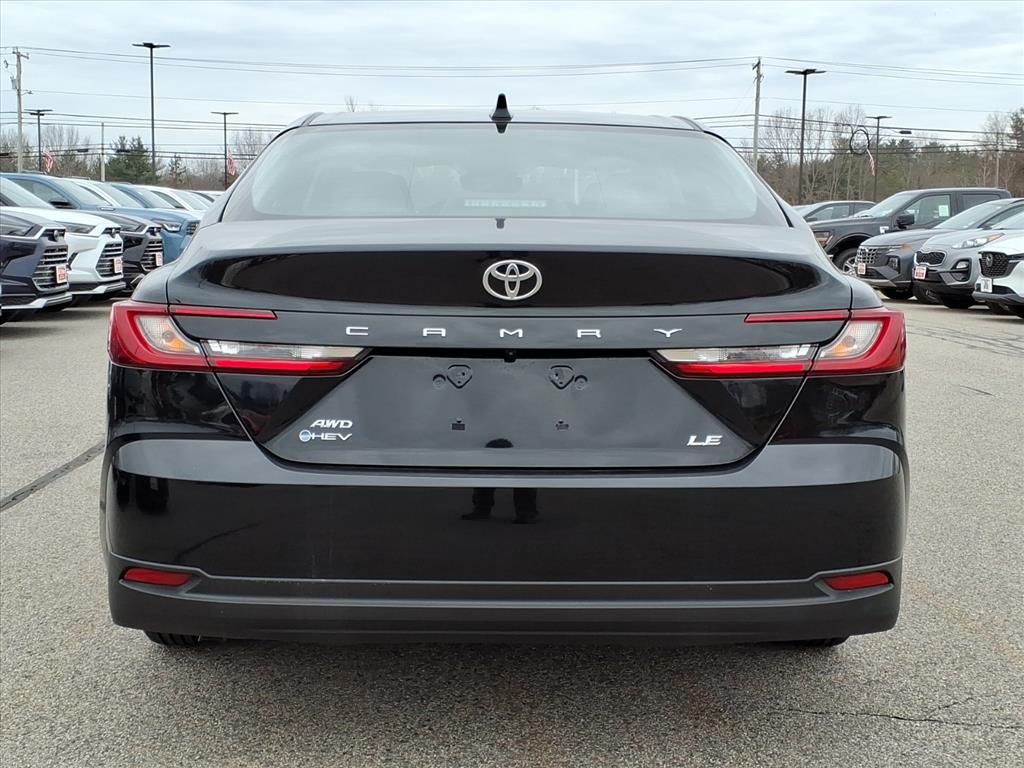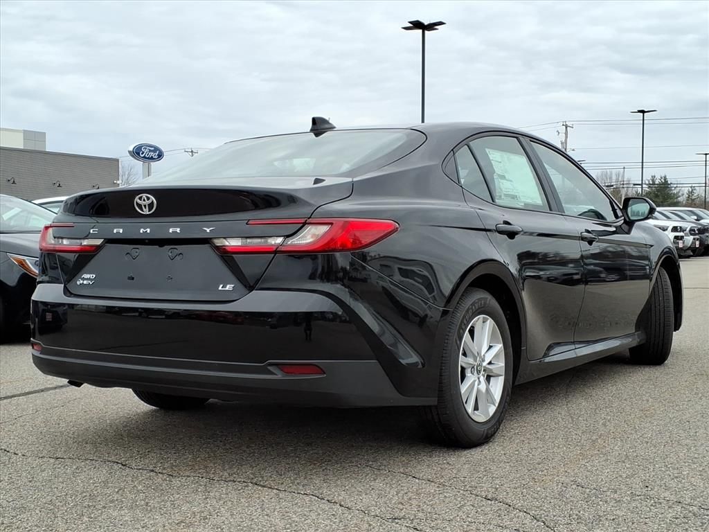 Midnight Black Metallic 2025 Toyota Camry LE 4D Sedan AWD eCVT 2.5L 4-Cylinder 16V DOHC 51/49 City/Highway MPG.