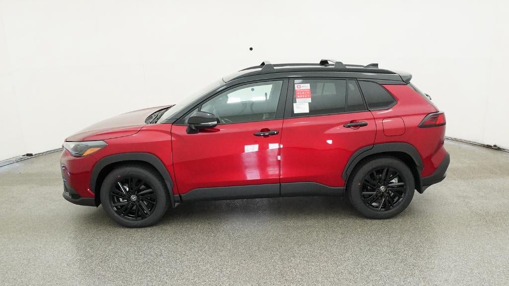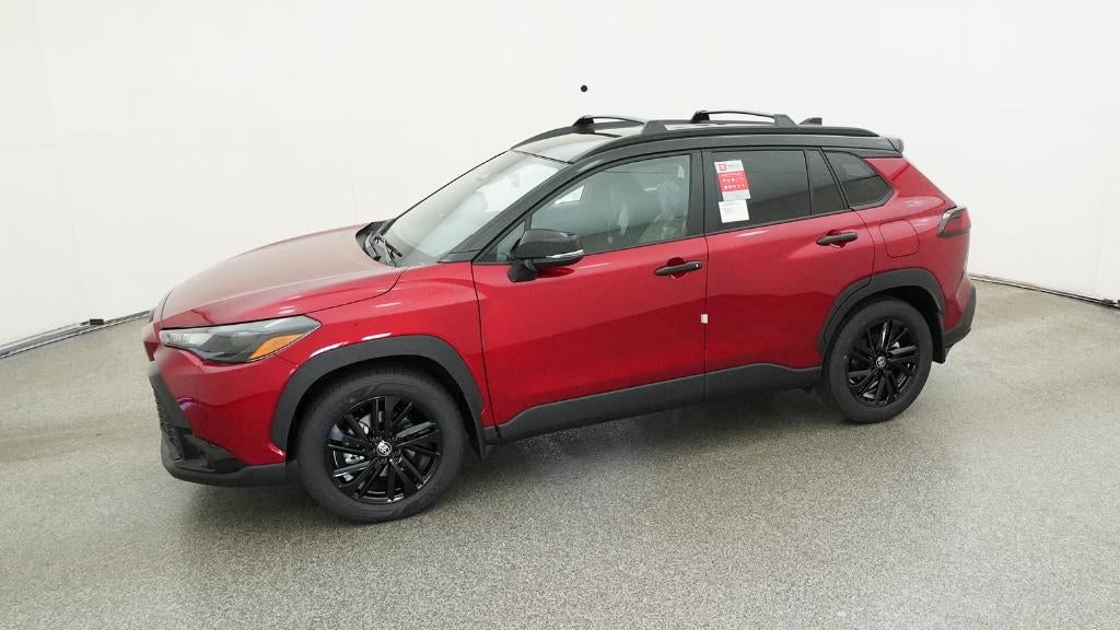 Red 2025 Toyota Corolla Cross Hybrid Nightshade AWD eCVT 2.0L I4 PDI Hybrid DOHC 16V LEV3-SULEV30 150hp 2.0L I4 PDI Hybrid DOHC 16V LEV3-SULEV30 150hp. Recent Arrival! 45/38 City/Highway MPG