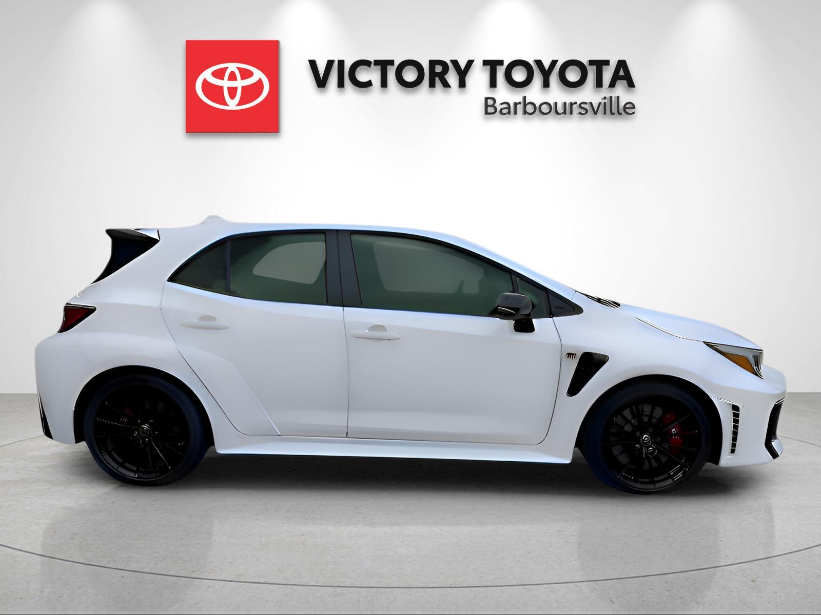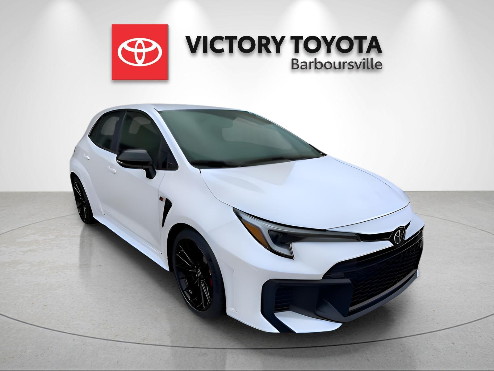 The 2025 Toyota GR Corolla Core AWD offers a blend of performance and efficiency with its 1.6L 3-Cyl. Turbo Engine and advanced features. Enjoy a comfortable interior with black fabric seating and a sport steering wheel, all wrapped in an Ice Cap exterior. This hatchback is designed for both city driving and highway adventures, providing a fun and responsive driving experience.