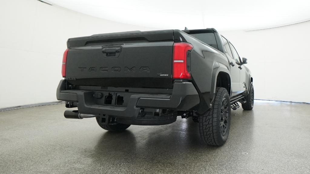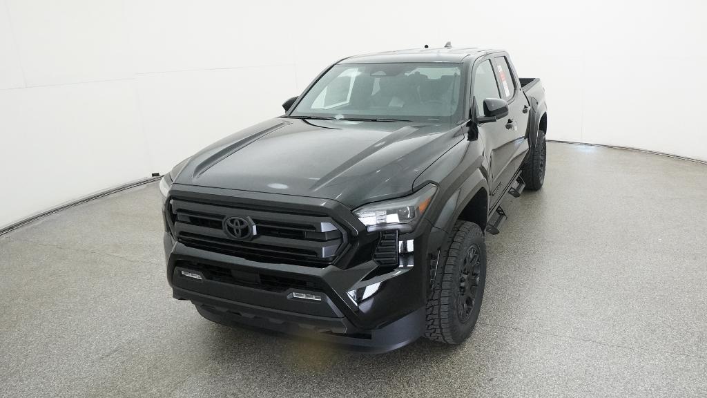 The 2025 Toyota Tacoma SR5 Double Cab 4-Wheel Drive features an i-FORCE 2.4L turbocharged inline-4 engine and a 8-speed automatic transmission. This vehicle offers a comfortable interior with fabric-trimmed seats, a polyurethane manual tilt/telescopic steering wheel, and a 60/40 split folding rear seat. Safety is enhanced with Toyota Safety Sense 3.0, including Pre-Collision System with Pedestrian Detection, Lane Departure Alert with Steering Assist, Automatic High Beams, Road Sign Assist, and Full-Speed Range Dynamic Radar Cruise Control. The exterior is finished in Black and includes styled alloy wheels, LED bed lighting, and LED fog lights.