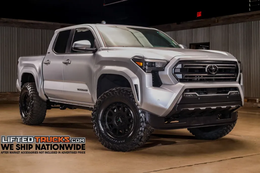 A bold blend of strength and style, our Lifted 2025 Toyota Tacoma SR5 Double Cab 4X4 in Celestial Silver Metallic delivers legendary off-road capability with the Cold Weather Package. Powered by a TurboCharged 2.4 Liter i-Force 4 Cylinder providing 278hp to an 8 Speed Automatic transmission for strength to spare.