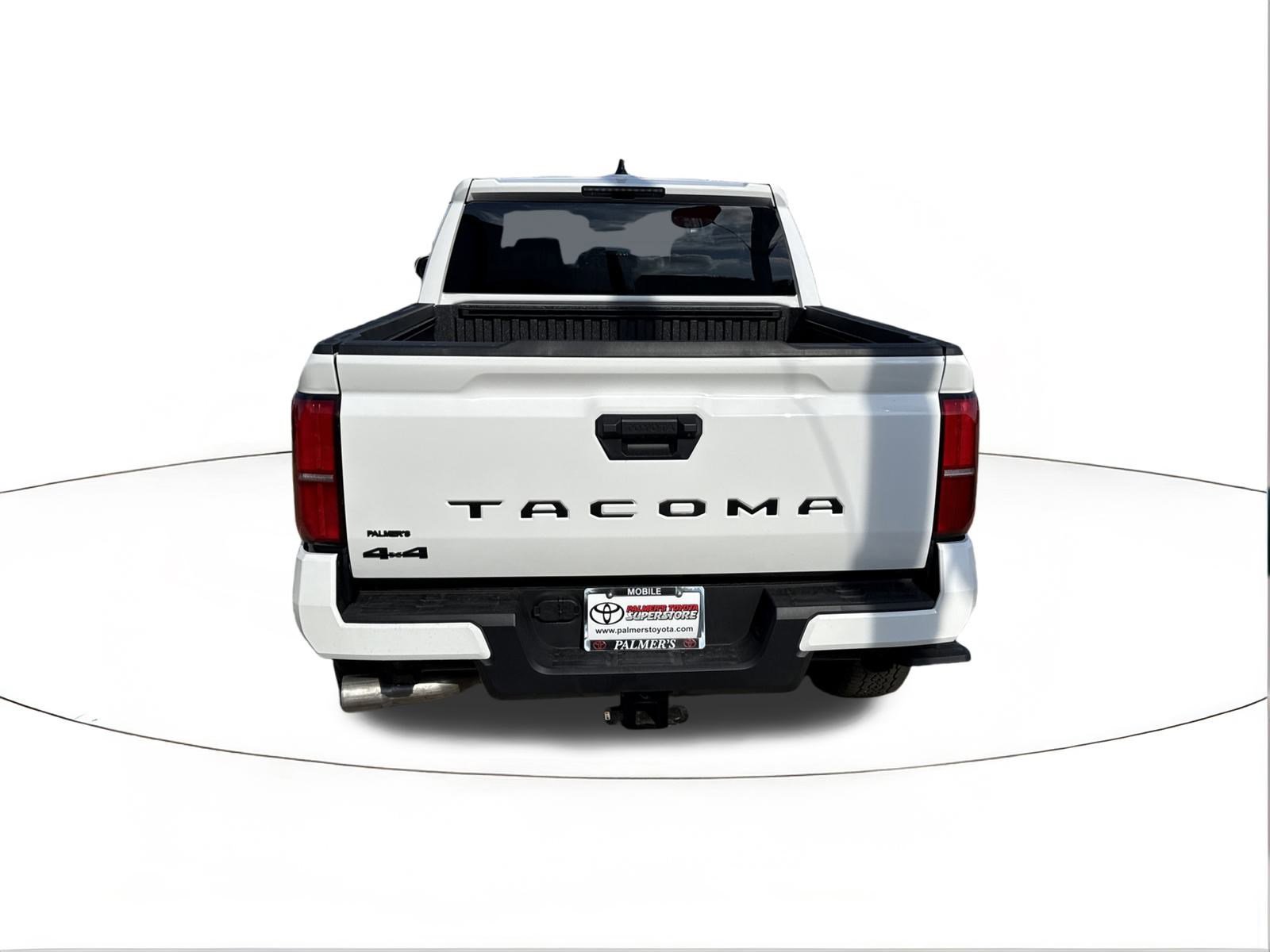 Ice 2025 Toyota Tacoma TRD Off-Road 4WD 8-Speed Automatic 2.4L 4-Cylinder 4WD, 3.583 Axle Ratio, 4-Wheel Disc Brakes, 6 Speakers, ABS brakes, Air Conditioning, Alloy wheels, AM/FM radio: SiriusXM, Anti-whiplash front head restraints, Apple CarPlay/Android Auto, Auto High-beam Headlights, Auto-dimming Rear-View mirror, Automatic temperature control, Brake assist, Bumpers: body-color, Driver door bin, Driver vanity mirror, Dual front impact airbags, Dual front side impact airbags, Electronic Stability Control, Emergency communication system: Safety Connect (1-year trial), Exterior Parking Camera Rear, Fabric Seat Trim, Four wheel independent suspension, Front anti-roll bar, Front Bucket Seats, Front Center Armrest, Front fog lights, Front reading lights, Fully automatic headlights, Heated door mirrors, Illuminated entry, JBL Premium Audio, Knee airbag, Leather Shift Knob, Leather steering wheel, Low tire pressure warning, Occupant sensing airbag, Outside temperature display, Overhead airbag, Overhead console, Panic alarm, Passenger door bin, Passenger vanity mirror, Power door mirrors, Power steering, Power windows, Radio: 8 Toyota Audio Multimedia, Rear step bumper, Rear window defroster, Remote keyless entry, Security system, SofTex Seat Trim, Speed control, Speed-sensing steering, Split folding rear seat, Steering wheel mounted audio controls, Tachometer, Telescoping steering wheel, Tilt steering wheel, Traction control, Trip computer, Turn signal indicator mirrors, Variably intermittent wipers, Wheels: 17 TRD Off-Road Alloy, 4WD.