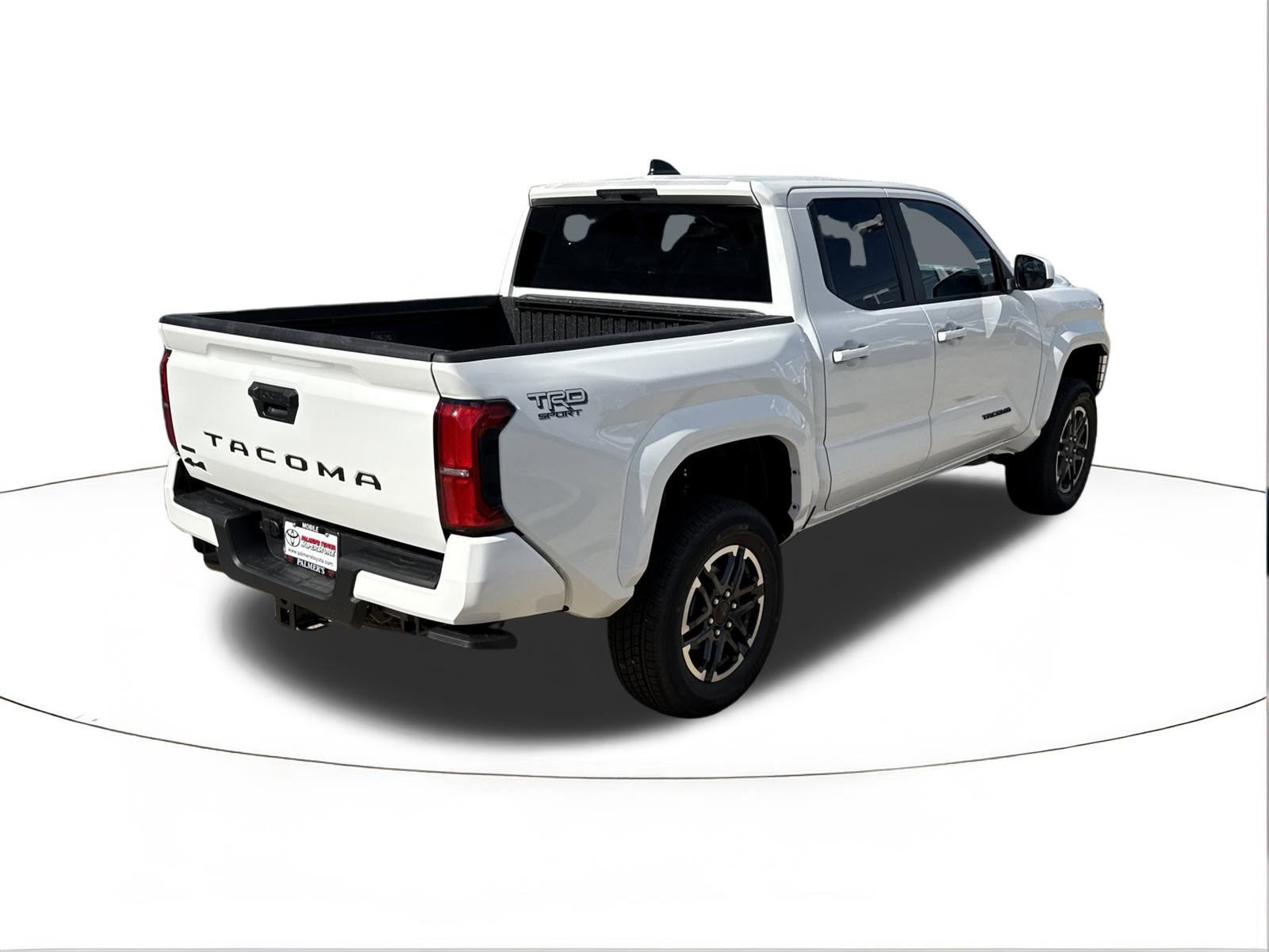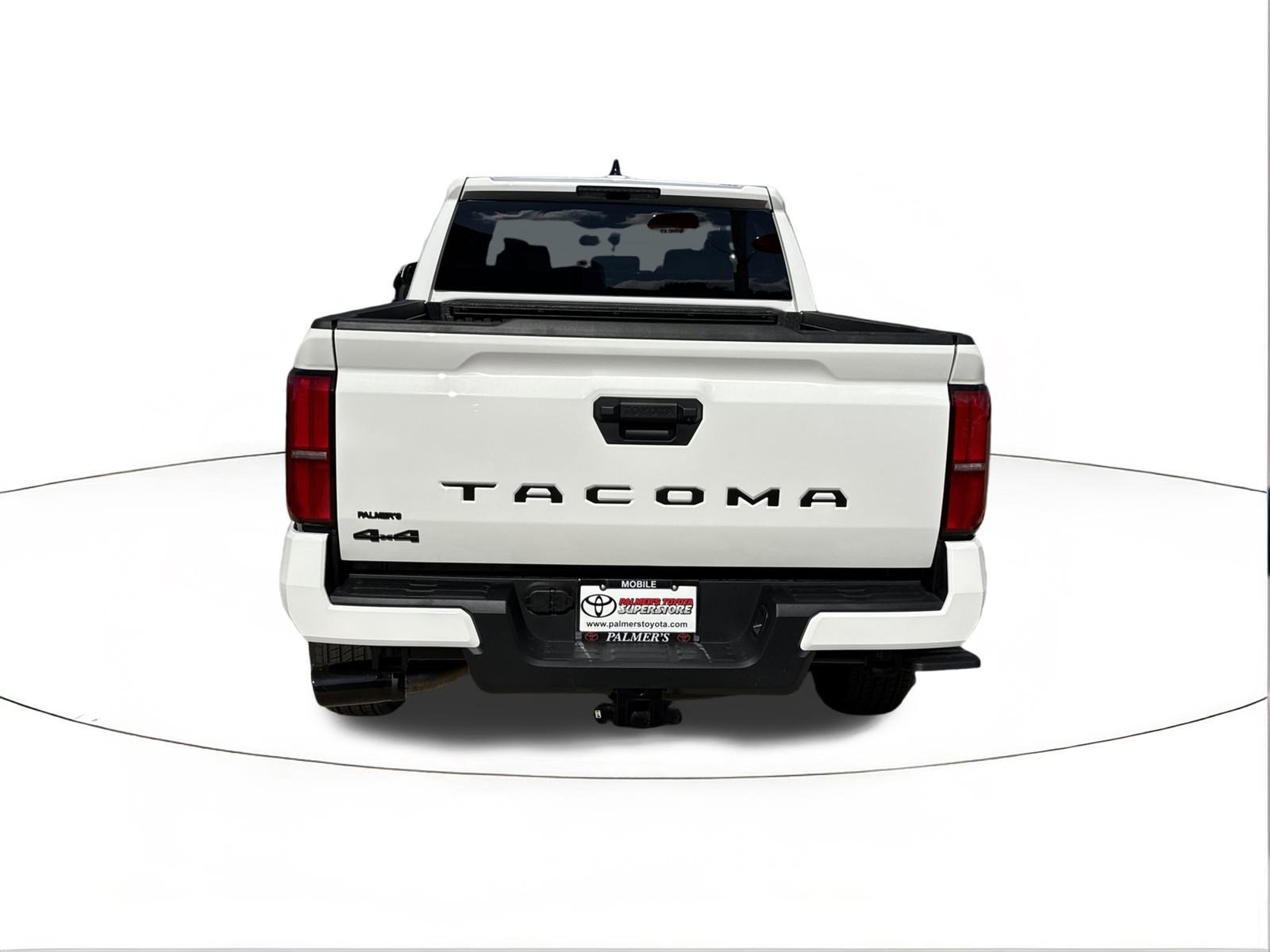 Ice 2025 Toyota Tacoma TRD Sport 4WD 8-Speed Automatic 2.4L 4-Cylinder 4WD, 3.583 Axle Ratio, 4-Wheel Disc Brakes, 6 Speakers, ABS brakes, Air Conditioning, Alloy wheels, AM/FM radio: SiriusXM, Anti-whiplash front head restraints, Apple CarPlay/Android Auto, Auto High-beam Headlights, Auto-dimming Rear-View mirror, Automatic temperature control, Brake assist, Bumpers: body-color, Driver door bin, Driver vanity mirror, Dual front impact airbags, Dual front side impact airbags, Electronic Stability Control, Emergency communication system: Safety Connect (1-year trial), Exterior Parking Camera Rear, Fabric Seat Trim, Four wheel independent suspension, Front anti-roll bar, Front Bucket Seats, Front Center Armrest, Front fog lights, Front reading lights, Fully automatic headlights, Heated door mirrors, Illuminated entry, JBL Premium Audio, Knee airbag, Leather Shift Knob, Leather steering wheel, Low tire pressure warning, Occupant sensing airbag, Outside temperature display, Overhead airbag, Overhead console, Panic alarm, Passenger door bin, Passenger vanity mirror, Power door mirrors, Power steering, Power windows, Radio: 8 Toyota Audio Multimedia, Rear step bumper, Rear window defroster, Remote keyless entry, Security system, SofTex Seat Trim, Speed control, Speed-sensing steering, Split folding rear seat, Steering wheel mounted audio controls, Tachometer, Telescoping steering wheel, Tilt steering wheel, Traction control, Trip computer, Turn signal indicator mirrors, Variably intermittent wipers, Wheels: 18 TRD Sport Alloy, 4WD.