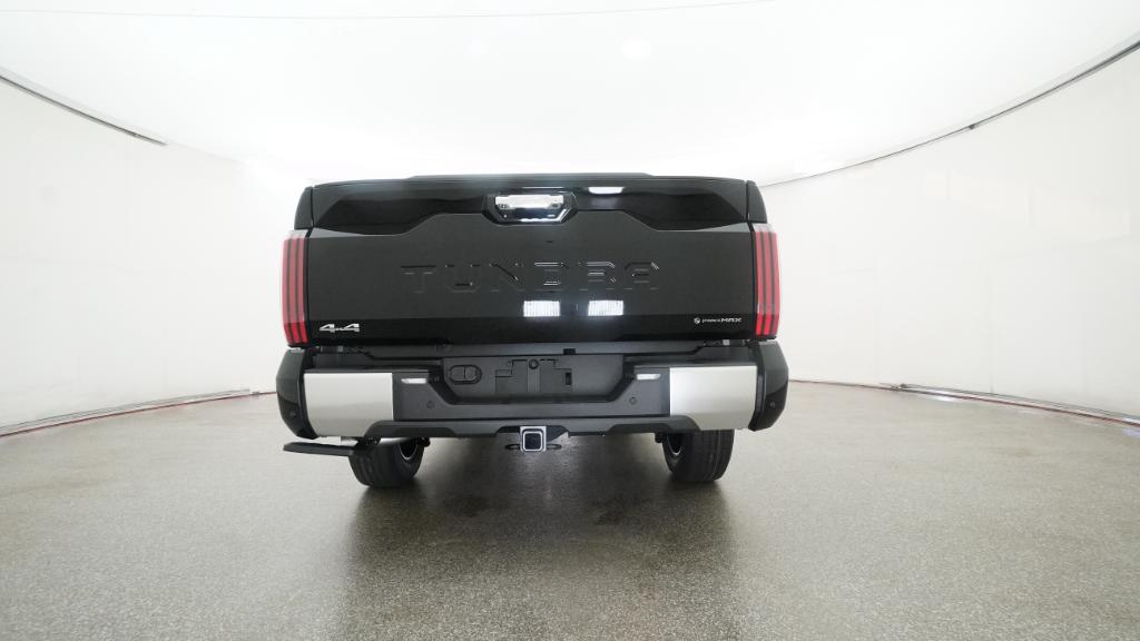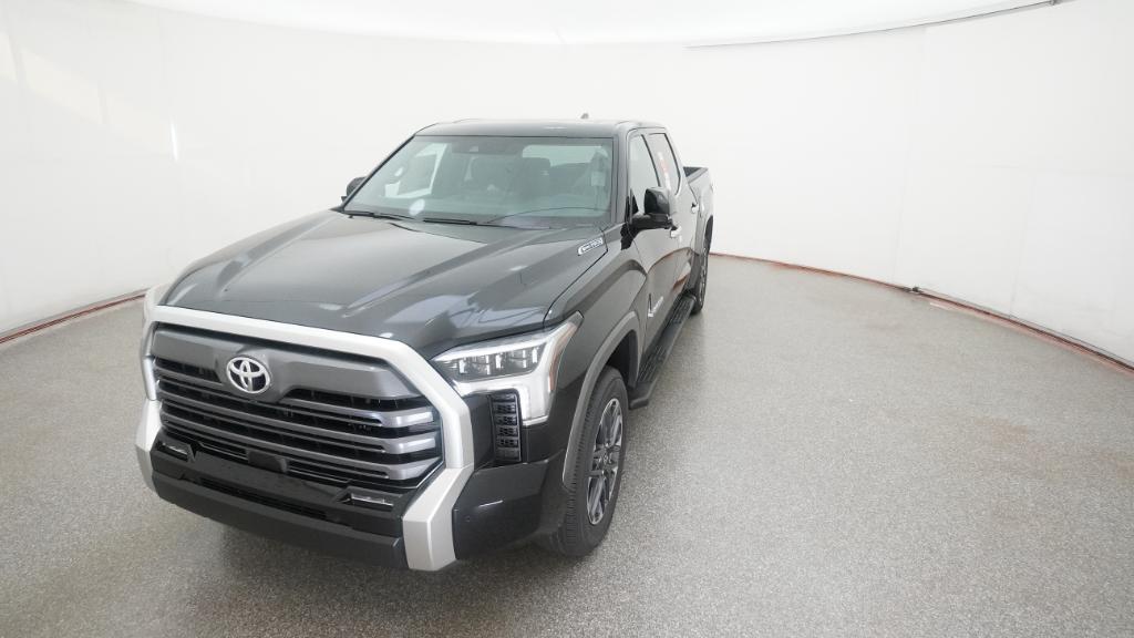 The 2025 Toyota Tundra Limited CrewMax 4-Wheel Drive features a Midnight Black Metallic exterior and a black interior. Powered by the i-FORCE MAX V6 Hybrid Engine, this truck offers a blend of power and efficiency. The vehicle is equipped with advanced technology and safety features, making it a versatile choice for both work and leisure.