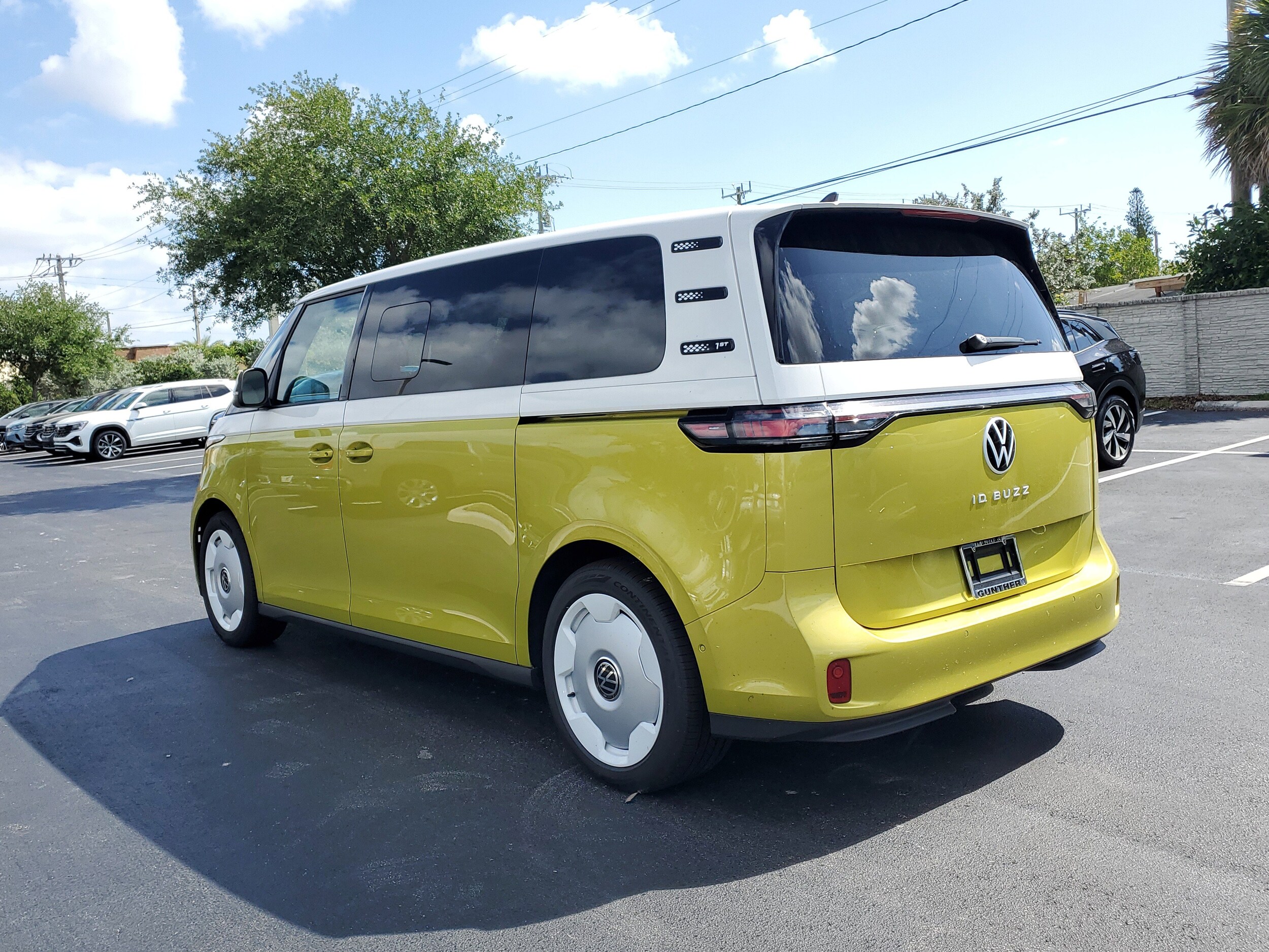 This Volkswagen ID. Buzz boasts an electric engine powering this automatic transmission. Pomelo Yellow, Dune, perforated V-Tex leatherette seating surfaces, 2-in-1 (240V/120V) EV charging cable. Visit us today. Come in for a quick visit at Gunther Volkswagen of Fort Lauderdale, 1660 S State Rd 7, Fort Lauderdale, FL 33317 to claim your Volkswagen ID. Buzz!