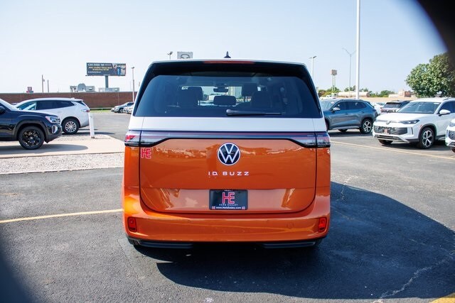 Orange 2025 Volkswagen ID. Buzz 1st Edition RWD Single-Speed Automatic Electric Motor Lifetime Powertrain Warranty, $10 Oil Changes for Life, Car Washes for Life, Texas Inspection Stickers for Life. Texoma's Best, Herb Easley Motors is home of the Lifetime Powertrain Warranty and $10 oil changes for life! Come experience the Herb Easley Difference; Real.Honest.Prices. 90/75 City/Highway MPG Prices do not include additional fees or closing costs including government fees. Price does not include $150 doc fee. All prices are subject to change without notice. All prices are before state, city, county fees, tag, title, license fees, and dealer installed options. Pricing cannot be combined with any other offer, sales, or finance specials. Prices include all incentives and require financing through a Herb Easley approved Financial institution.
