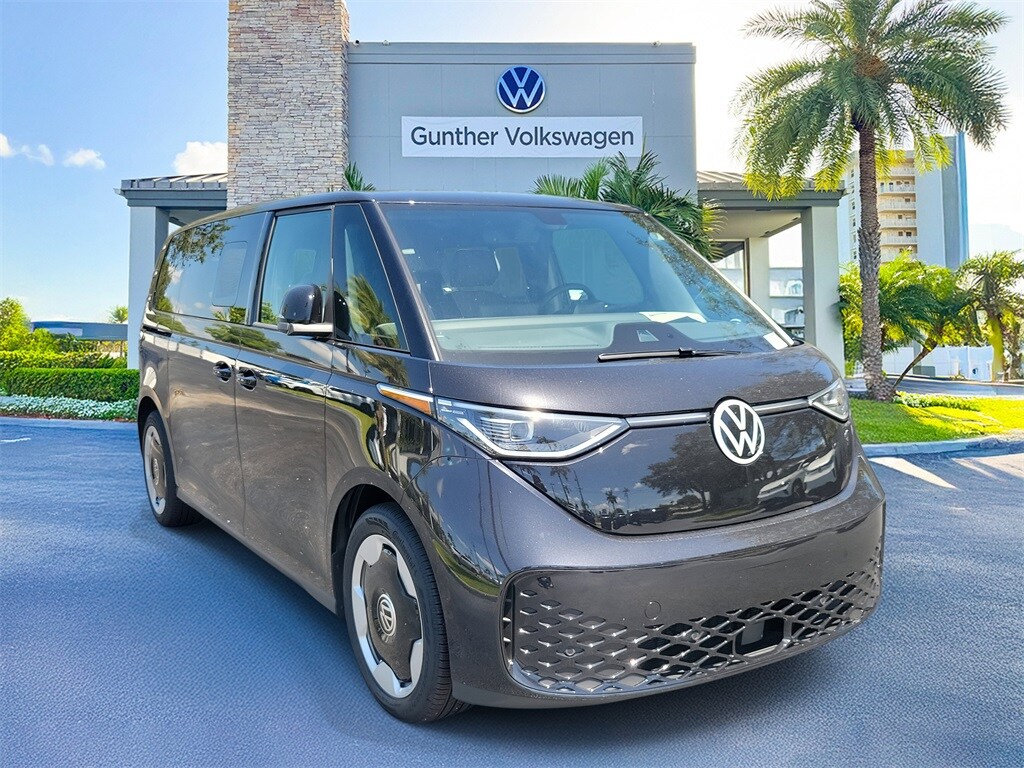$2,044 off MSRP! Deep Black Pearl 2025 Volkswagen ID. Buzz Pro S 90/75 City/Highway MPG. Equipped with 3rd row seats: split-bench, 9 Speakers, ABS brakes, Air Conditioning, Alloy wheels, Auto High-beam Headlights, Auto-dimming Rear-View mirror, Automatic temperature control, Brake assist, Bumpers: body-color, Delay-off headlights, Driver door bin, Driver vanity mirror, Driver's Seat Mounted Armrest, Dual front impact airbags, Dual front side impact airbags, Electronic Stability Control, Emergency communication system: VW Car-Net Safe & Secure 5-year, Exterior Parking Camera Rear, Four wheel independent suspension, Front anti-roll bar, Front Bucket Seats, Front dual zone A/C, Front fog lights, Front reading lights, Fully automatic headlights, Heated & Actively Ventilated Front Seats, Heated door mirrors, Heated front seats, Heated rear seats, Heated steering wheel, Illuminated entry, Leather steering wheel, Low tire pressure warning, Memory seat, Navigation System, Occupant sensing airbag, Outside temperature display, Overhead airbag, Panic alarm, Passenger door bin, Passenger seat mounted armrest, Passenger vanity mirror, Perforated V-Tex Leatherette Seating Surfaces, Power door mirrors, Power driver seat, Power Liftgate, Power passenger seat, Power steering, Power windows, Radio data system, Radio: Discover Pro Max w/Touchscreen Navigation, Rain sensing wipers, Rear air conditioning, Rear anti-roll bar, Rear reading lights, Rear window defroster, Rear window wiper, Rearview Mirror w/HomeLink Connect, Remote keyless entry, Speed control, Speed-sensing steering, Split folding rear seat, Spoiler, Steering wheel mounted audio controls, TBD Axle Ratio, Telescoping steering wheel, Tilt steering wheel, Traction control, Trip computer, Turn signal indicator mirrors, Variably intermittent wipers, Ventilated front seats, VW Care, and Wheels: 20" Two-Tone Disc Alloy.
