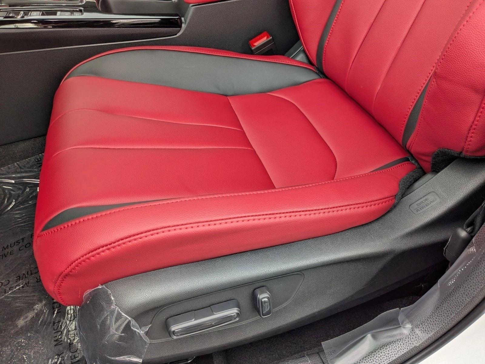 Platinum White Pearl, Moonroof, Lane Keeping Assist, Keyless Start, Rear Spoiler, Red; Leatherette-Trimmed Seating Surfaces.