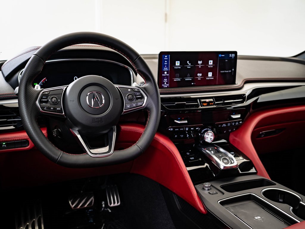 2026 Acura MDX w/A-Spec Package SH-AWD, located at Acura of Wichita. MSRP $64,450. Liquid Carbon Metallic with Red Leather interior. This MDX is equipped with Blind spot assist, Rear cross-traffic warning, Park assist, Brake assist, Front collision mitigation, Adaptive cruise control, Navigation and Rearview camera, Apple CarPlay and Android Auto, Moonroof, and SiriusXM (subscription required). For more information, please visit the AutoiPacket link above.