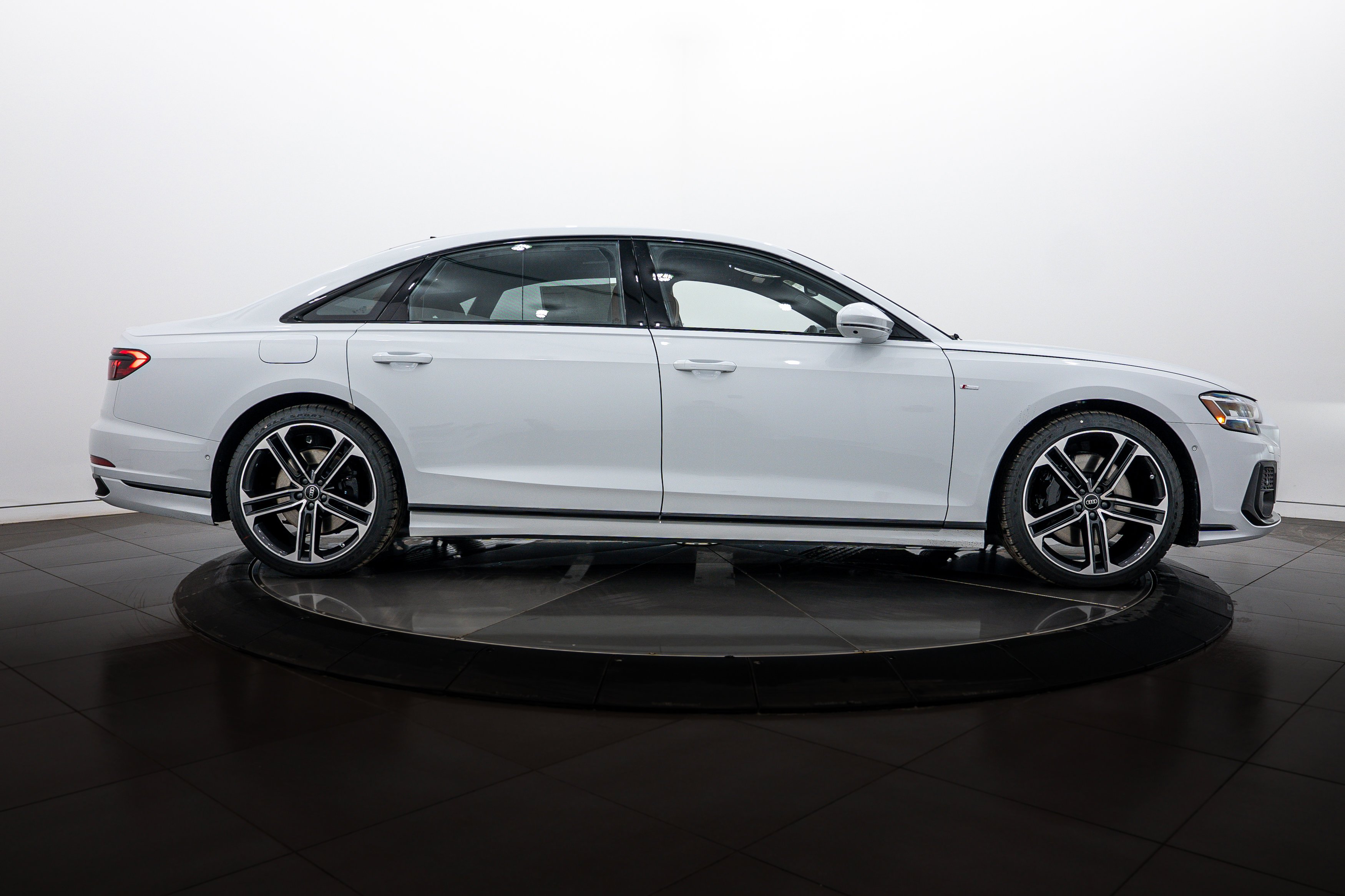 Glacier White 2026 Audi A8 L 55 quattro quattro 8-Speed Automatic with Tiptronic 3.0L V6 Turbocharged DOHC 24V LEV3-ULEV70 335hp Brown Leather. 19/27 City/Highway MPG