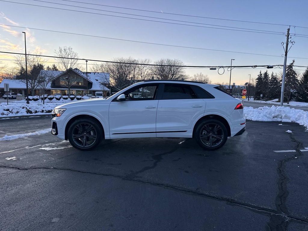 Glacier White Metallic 2026 Audi Q8 55 Premium quattro quattro 8-Speed Automatic with Tiptronic 3.0L TFSI 4-Way Power Lumbar For Passenger Seat, ABS brakes, Active Cruise Control, Alloy wheels, Anthracite Gray Audi Rings, Bang & Olufsen Premium Sound System with 3D Sound, Black Exterior Trim, Compass, Convenience Plus Package, Dark Chrome Exhaust Tips, Electronic Stability Control, Front dual zone A/C, Heated door mirrors, Heated Front Bucket Seats, Heated front seats, Heated Steering Wheel, Illuminated entry, LED Interior Lighting Plus Package, Low tire pressure warning, Navigation System, Power Liftgate, Remote keyless entry, Top View Camera System with Virtual 360 View, Traction control, Wheels: 21" 5-Segment-Spoke Design with Graphite Gray Finish. Recent Arrival!