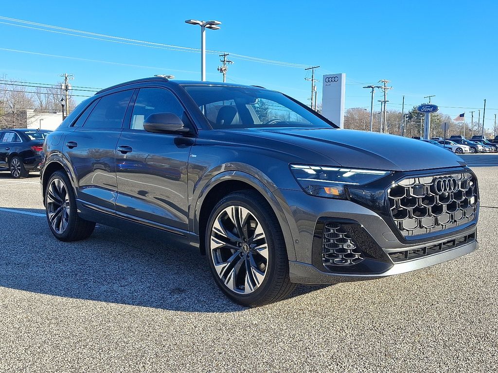 2026 Audi Q8 55 Premium Plus Premium Plus Package, 4-Way Power Lumbar for Passenger Seat, 4-Zone Automatic Climate Control, 7-Pin Adapter, ABS brakes, Active Cruise Control, Adaptive Air Suspension, Anthracite Gray Audi Rings, Audi Cargo Box, Bang & Olufsen Premium Sound System with 3D Sound, Black Exterior Trim, Compass, Control Buttons in Gloss Black with Haptic Feedback, Dark Chrome Exhaust Tips, Dual-Pane Acoustic Glass for Side Windows, Electronic Stability Control, Exterior Parking Camera Rear, Front dual zone A/C, Front Seats with Ventilation, Heated door mirrors, Heated Front Bucket Seats, Heated front seats, Heated Rear Seats, Heated Steering Wheel, Illuminated Door Sills, Illuminated entry, Illuminated S Line Door Sills, LED Interior Lighting Plus Package, Low tire pressure warning, Navigation System, Power Liftgate, Power moonroof: Panoramic, Power Rear Side Windows with Manual Tailgate Sunshades, Power Soft-Closing Doors, Premium Plus Package, Remote keyless entry, S Line Black Optic Package, S Line Exterior, Top View Camera System with Virtual 360 View, Traction control, Trailer Hitch, Wheels: 22" 5-Double-Arm Design with Bicolor Finish.