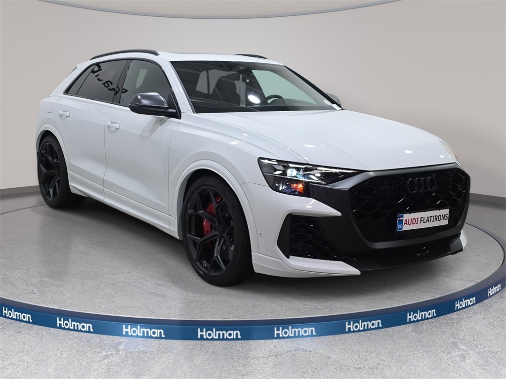 White 2026 Audi RS Q8 performance 4.0T quattro quattro Dealer Inspected, 7-Pin Adapter, Alcantara Covered Steering Wheel, Black Dinamica Headliner, Black Seat Belts with Red Edging, Dinamica Covered Shift Lever & Center Console Sides, Dual-Pane Acoustic Glass For Side Windows, Executive Package, Head-Up Display, Heated Rear Seats, Intersection Assist, Luxury Package, Massage Function For Front Seats, Power Soft-Closing Doors, Remote Park Assist Plus, RS Design Package - Red, RS Logo Floor Mats with Red Contrast Stitching, Trailer Hitch. TO THE QUOTED PRICE OF EACH VEHICLE SOLD, THERE WILL BE ADDED THE SUM OF $695 FOR COSTS AND ADDITIONAL PROFIT TO THE SELLER/DEALER. We also pre-equip Stargard on every vehicle we keep for security, the cost is $995.