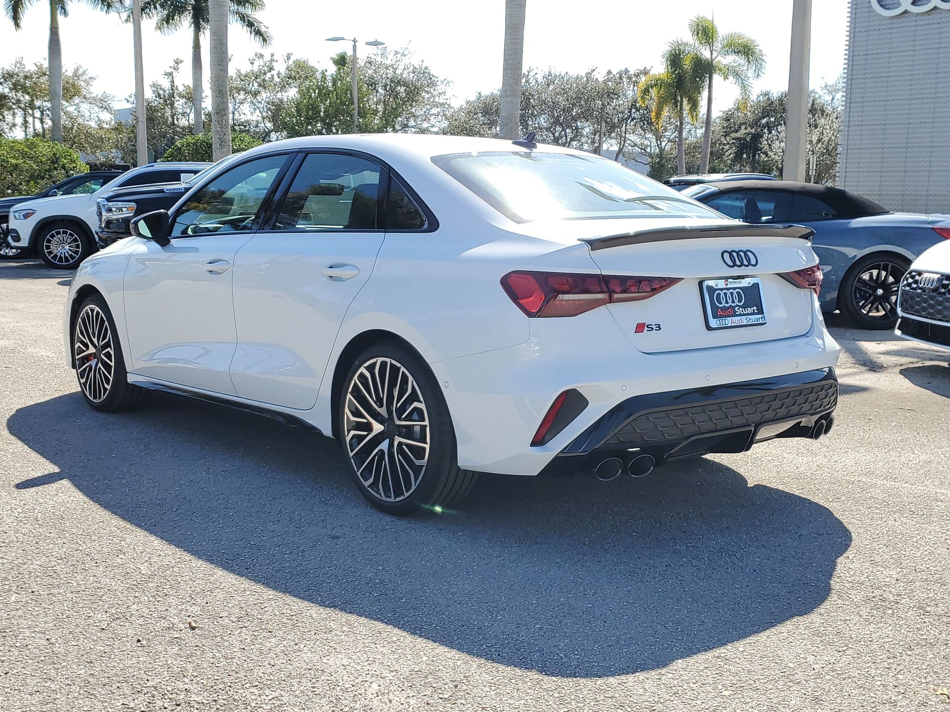 2026 Audi S3 Sedan. Finished in Glacier White Metallic with a Black interior and striking Express Red stitching, this 2026 Audi S3 Sedan blends performance and refined style. Featuring a Carbon Fiber Package with spoiler and mirror caps, Black Optic accents, Sport Plus and Driver Assistance Plus packages, Fine Nappa Leather, and all-weather mats, it delivers dynamic driving excitement with premium comfort and advanced technology.