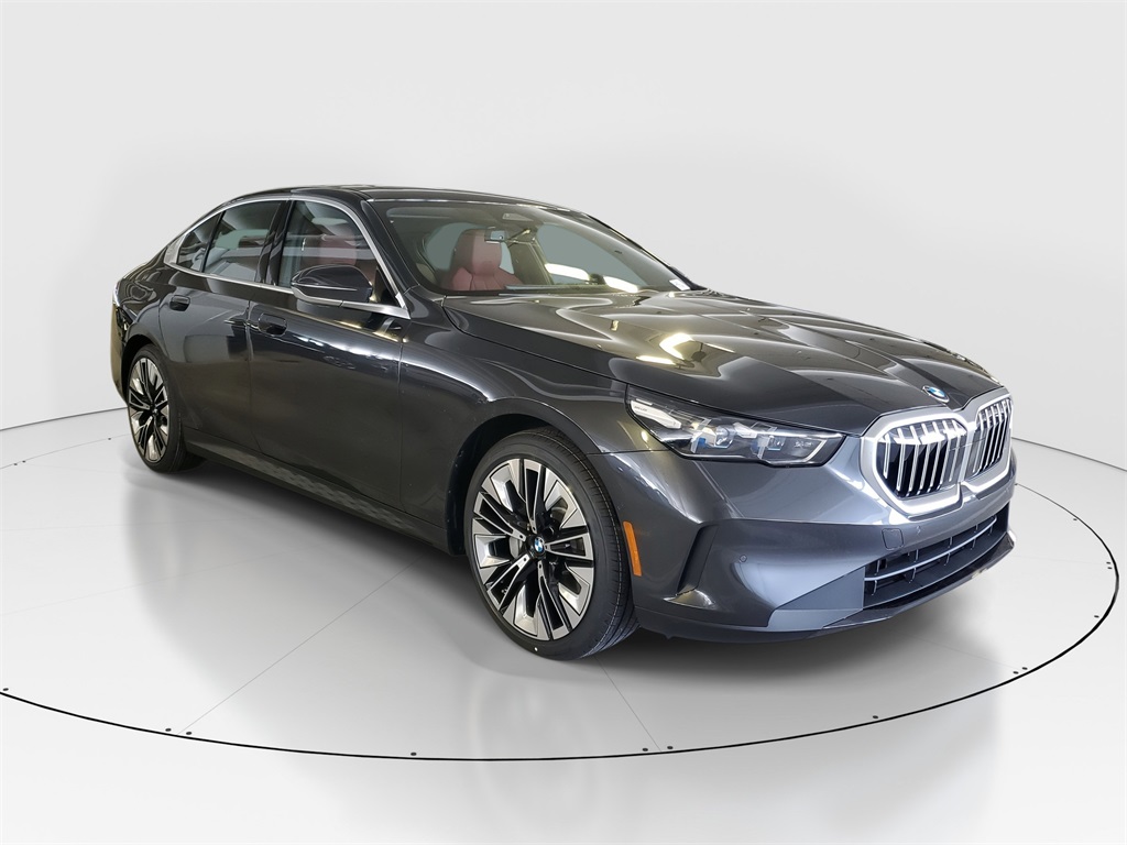 Dark Graphite Metallic 2026 BMW 5 Series 530i RWD 8-Speed Automatic 2.0L I4 DOHC Burgundy Red Premium Synthetic. The vehicle features a premium synthetic leather interior and a full floor of advanced technology, including the Connected Package Pro, Apple CarPlay and Android Auto Compatibility, and a Harman/Kardon Premium Sound System. The driving experience is enhanced with sport seats, a heated steering wheel, and a moonroof. The vehicle is designed for comfort and efficiency, with a 28/35 City & High Highway MPG.