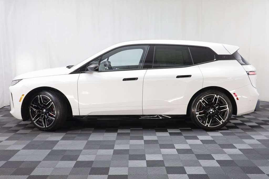 The 2026 BMW iX M70 With Navigation & AWD features a Mineral White Metallic exterior and an Amido interior. It is powered by an electric motor and equipped with all-wheel drive, automatic climate control, and a panoramic eclipsing roof. The vehicle offers advanced safety features, a premium sound system, and the latest in connectivity and driving assistance technology.