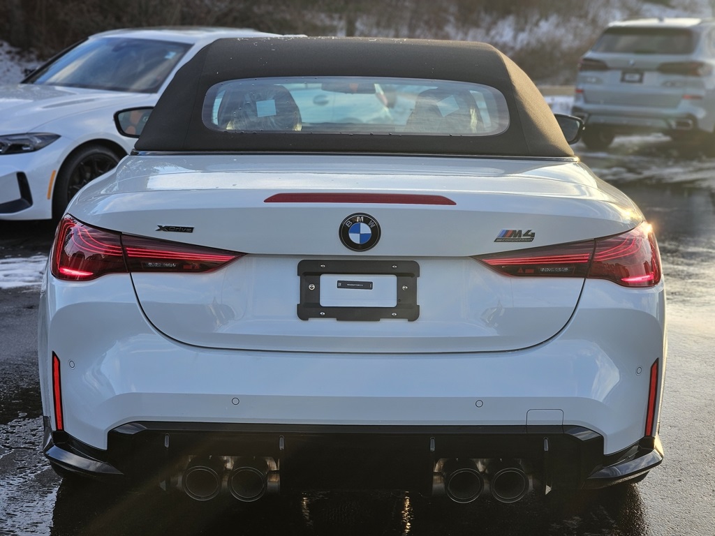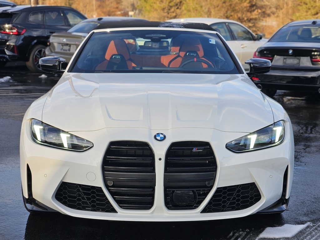The 2026 BMW M4 Competition AWD is a luxury sport convertible with a 3.0L I6 TwinPower Turbo engine delivering 523hp. This new model features a striking Alpine White exterior with a Kyalami Orange/Black interior, advanced All Wheel Drive, and a host of premium features. The vehicle is designed for both high-performance driving and comfort, offering advanced technology, a spacious convertible body, and a refined driving experience.