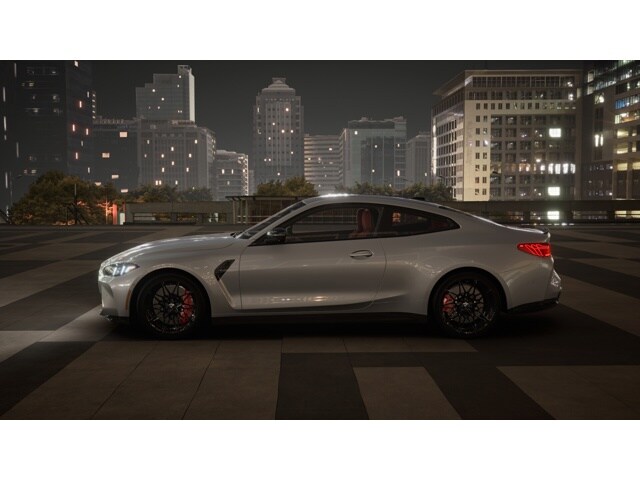 The 2026 BMW M4 Competition Coupe is a new, in-transit vehicle at Long Beach BMW. It features a Brooklyn Grey Metallic exterior and Fiona Red/Black interior, with a focus on performance and technology. The car is equipped with an I-6 twin turbo engine, rear-wheel drive, and an 8-speed automatic transmission. It offers a comfortable and luxurious driving experience with advanced features and safety systems.