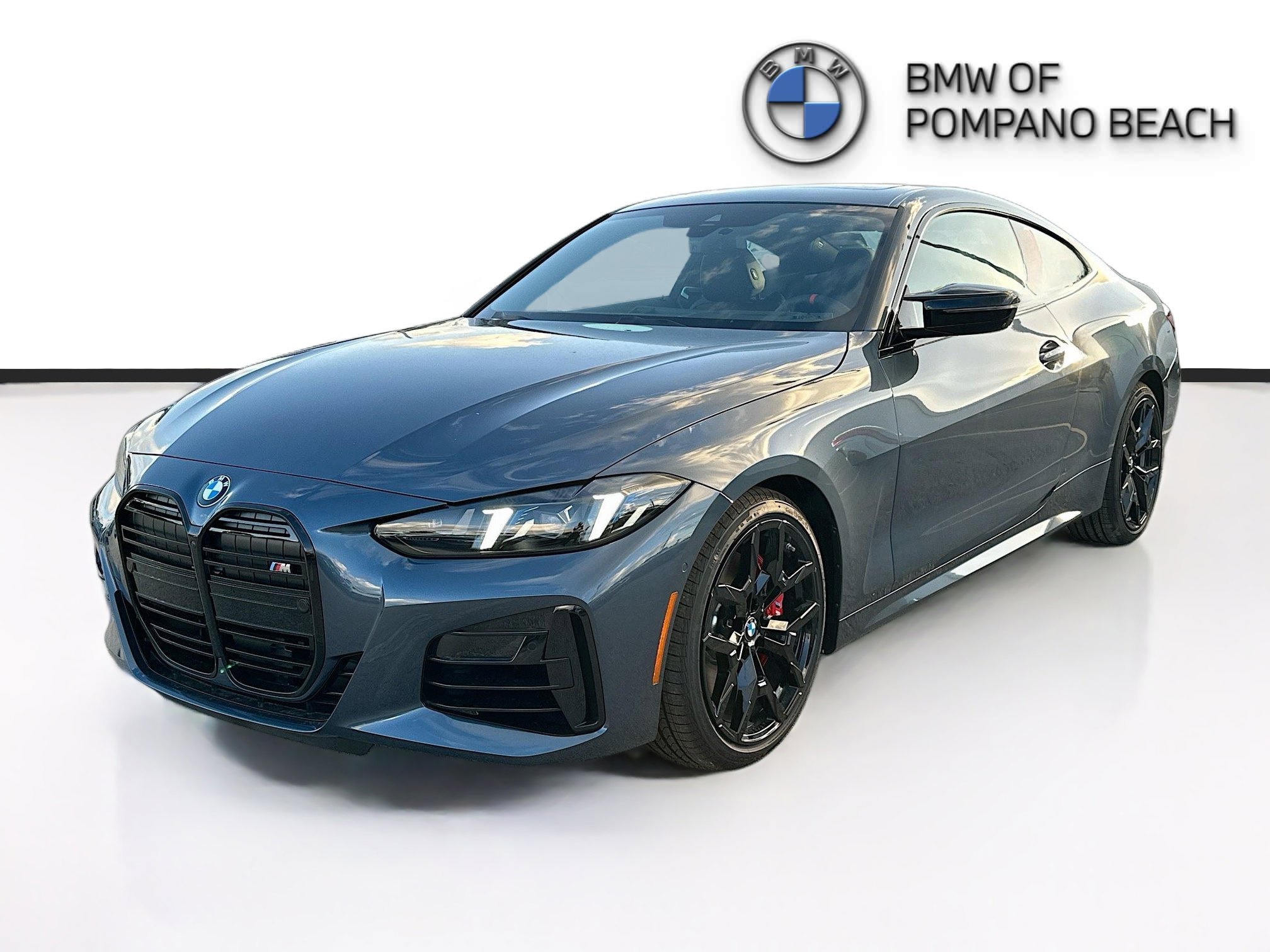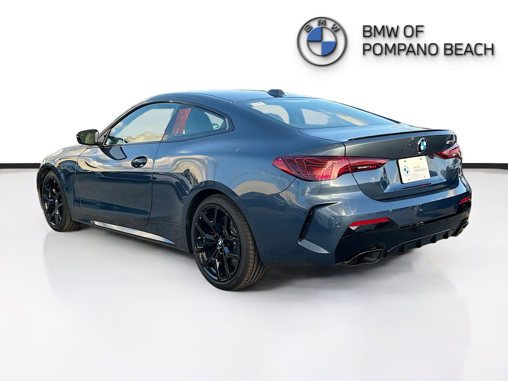 Blue Metallic 2026 BMW 4 Series M440i RWD 8-Speed Automatic Sport 3.0L I6. Equipped with Connected Package Pro Limited Term, 10 Speakers, 4-Wheel Disc Brakes, 48V Mild Hybrid System, ABS brakes, Air Conditioning, Alloy wheels, AM/FM Radio, AM/FM radio: SiriusXM with 360L, Audio memory, Auto High-beam Headlights, Auto-dimming door mirrors, Auto-dimming Rear-View mirror, Automatic temperature control, BMW TeleServices, Brake assist, Bumpers: body-color, Compass, ConnectedDrive Services, Delay-off headlights, Driver door bin, Driver vanity mirror, Dual front impact airbags, Dual front side impact airbags, Electronic Stability Control, Emergency communication system: BMW Assist eCall, Exterior Parking Camera Rear, Four wheel independent suspension, Front anti-roll bar, Front Bucket Seats, Front Center Armrest, Front dual zone A/C, Front reading lights, Fully automatic headlights, Garage door transmitter, Heated door mirrors, Heated Front Seats, Heated front seats, Heated steering wheel, Hi-Fi Sound System, HVAC memory, Illuminated entry, Knee airbag, Leather steering wheel, Low tire pressure warning, Lumbar Support, Memory seat, Navigation, Navigation System, Occupant sensing airbag, Outside temperature display, Overhead airbag, Overhead console, Panic alarm, Passenger door bin, Passenger vanity mirror, Perforated SensaTec Upholstery, Power door mirrors, Power driver seat, Power Front Seats, Power moonroof, Power passenger seat, Power steering, Power windows, Radio data system, Rain sensing wipers, Rear anti-roll bar, Rear reading lights, Rear seat center armrest, Rear window defroster, Remote keyless entry, Security system, Speed control, Speed-sensing steering, Speed-Sensitive Wipers, Split folding rear seat, Spoiler, Sport Seats, Sport steering wheel, Steering wheel mounted audio controls, Tachometer, Telescoping steering wheel, Tilt steering wheel, Traction control, Trip computer, Turn signal indicator mirrors, Variably intermittent wipers, Wheels: 19 x 8 M Dual-Spoke Bicolor and Wireless Device Charging.
