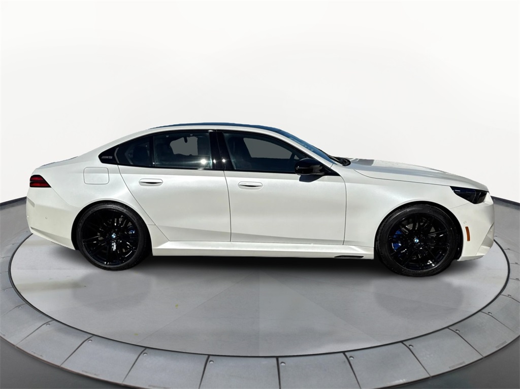 2026 BMW M5. This luxury sport sedan features a 4.4L V8 TwinPower Turbo engine with a hybrid electric motor, delivering a combined fuel economy of 14 mpg. The vehicle is equipped with advanced technology and comfort features, including a head-up display, navigation system, and a panoramic roof. The exterior is Frozen Brilliant White Metallic, while the interior is Black Extended Merino Leather. The M5 Base model offers a driving experience with all-wheel drive, adaptive suspension, and a host of driver assistance features.