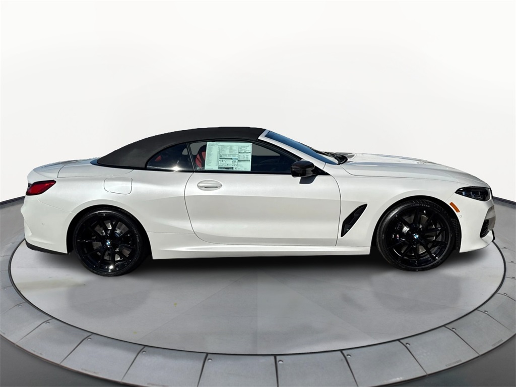 2026 BMW 8 Series M850i xDrive. This luxury sport convertible features a 4.4L V8 TwinPower Turbo engine, all-wheel drive, and a host of advanced technology and safety features. The vehicle is finished in Mineral White Metallic with a Fiona Red/Black interior and comes with a price tag of $131,950.