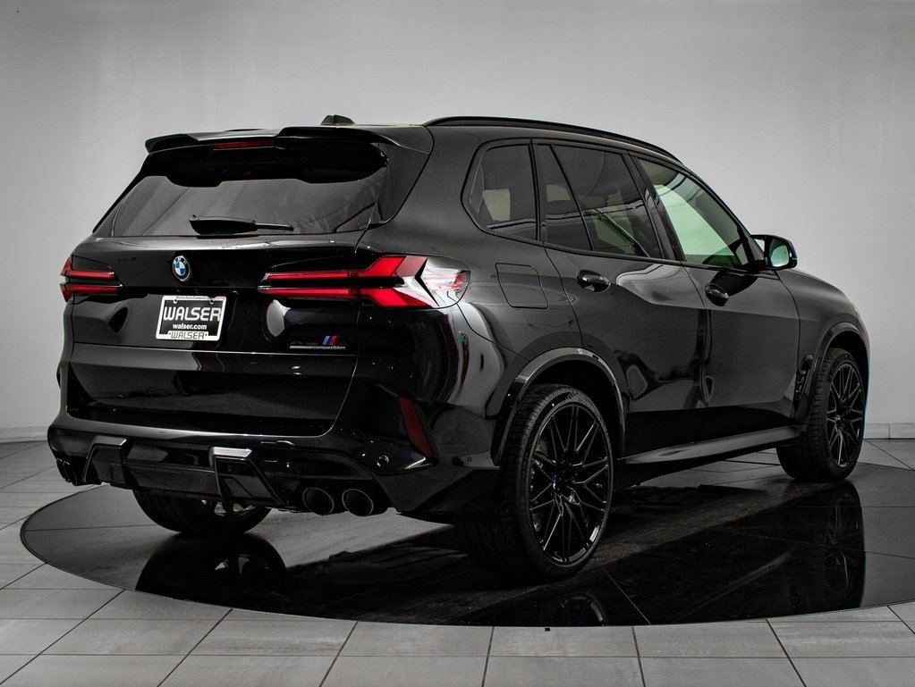 2026 BMW X5 M Competition, located at BMW of Wichita. MSRP $141,125. Black Sapphire Metallic with Sakhir Orange/Black Leather interior. This X5 is equipped with the Driving Assistance Professional and Executive Packages. Package options and additional features consist of Blind spot assist, Rear cross-traffic warning, Park assist, Brake assist, Front collision mitigation, Adaptive cruise control, Lane keep assist, Lane departure warning, Navigation and Surround view camera, Head-up display, Apple CarPlay and Android Auto, Bowers & Wilkins Diamond sound system, Heated/Ventilated/Massaging front seats, Heated steering wheel, Heated/Cooled cupholders, Heated rear seats, Sunroof, and SiriusXM (subscription required). For more information, please visit the AutoiPacket link above.