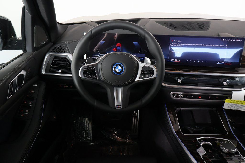 The 2026 BMW X5 xDrive50e features a 3.0L I6 DOHC 24V turbo engine with a hybrid electric motor, offering a blend of performance and efficiency. With a luxurious Black Sensafin interior and a striking Carbon Black Metallic exterior, this SUV is designed for both comfort and style. It comes equipped with advanced technology, including navigation, a head-up display, and a Harman/Kardon surround sound system. The vehicle also boasts a suite of driver assistance features and a panoramic moonroof, making it a premium choice for those seeking both power and refinement.
