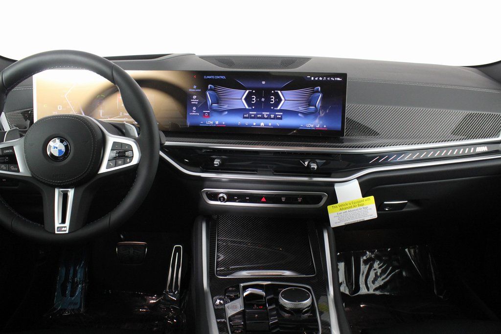 The 2026 BMW X6 M60i features a 4.4L V8 32V Twin Turbocharged engine with a 48V mild hybrid system, offering a blend of performance and efficiency. With a luxurious Black Sensafin interior and a striking Black Sapphire Metallic exterior, this sports activity coupe is designed for both driving excitement and comfort. It includes advanced technology, premium sound, and a suite of driver assistance features for a refined driving experience.