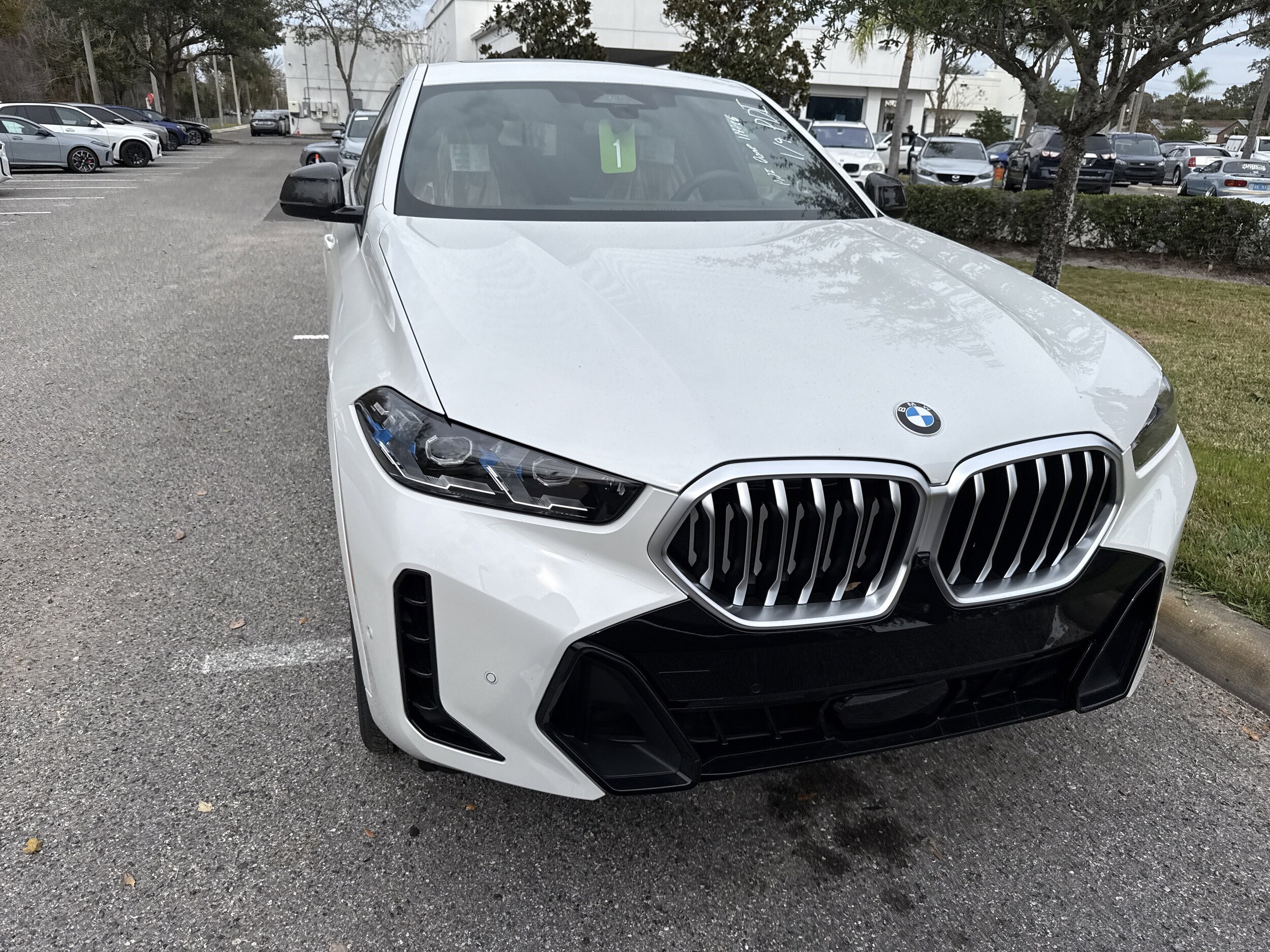 The 2026 BMW X6 SUV is in transit and available at Fields BMW South Orlando. This new model features a Mineral White Metallic exterior and Cognac Sensafin interior. It is equipped with a mild hybrid powertrain, all-wheel drive, and a full LED lighting system. The vehicle offers a premium driving experience with advanced features and a spacious, comfortable cabin for up to five passengers.
