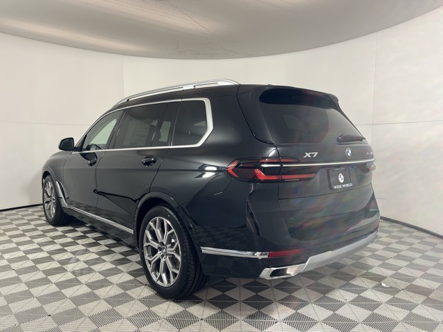 The 2026 BMW X7 xDrive40i offers a blend of luxury and performance with a 3.0L I6 DOHC 24V engine and a mild hybrid system. This vehicle features a black Sapphire Metallic exterior and a Black interior. The vehicle is equipped with all wheel drive, automatic climate control, and a high. The vehicle is described as "exceptional" and "pauses" the "exceptional" description. The X7 is designed for comfort and convenience with features like a 3rd row seat, ventilated front seats, heated multi-contour seats, and a premium package. The vehicle also includes advanced technology and safety features, making it a standout in the luxury SUV market.