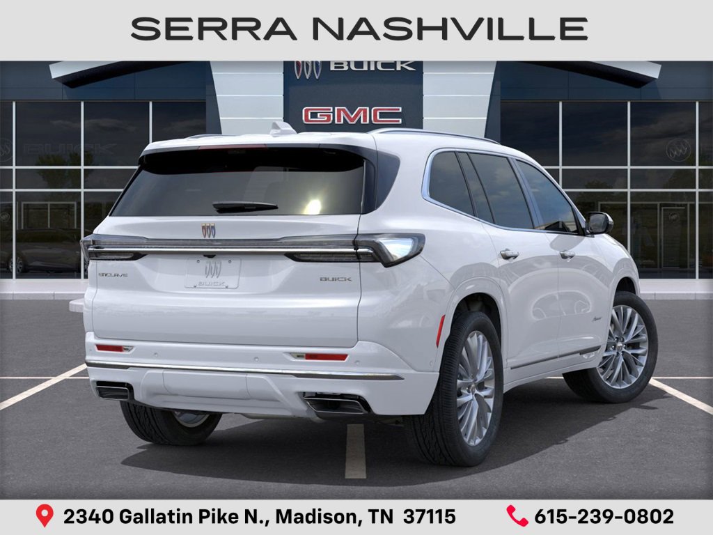 2026 Buick Enclave Avenir For sale at Serra Buick Nashville - Serra Nashville has the largest selection of the new Buick Enclave in Nashville. This vehicle is Iridescent White Tricoat and well equipped with Floor Liner Package, Super Cruise Package, FWD, 16 Speakers, 3rd row seats, Alloy wheels, Apple CarPlay/Android Auto, Auto High-beam Headlights, Auto tilt-away steering wheel, Auto-dimming door mirrors, Auto-dimming Rear-View mirror, Automatic temperature control, Bose Performance 16-Speaker Audio System with Subwoofer, Brake assist, Electronic Stability Control, Emergency communication system: OnStar and Buick connected services capable, Four wheel independent suspension, Front dual zone A/C, Heads-Up Display, Heated door mirrors, Heated Driver and Front Passenger Seats, Heated front seats, Heated rear seats, Heated steering wheel, Illuminated entry, Leather steering wheel, Memory seat, Navigation System, Power Liftgate, Power moonroof, Power passenger seat, Rain sensing wipers, Rear air conditioning, Remote keyless entry, Security system, SiriusXM with 360L Trial Subscription. Ask us about special APR rates, lease offers and incentives on most 2026 Buick Enclaves on sale at Serra Chevrolet Buick GMC Nashville. If you're shopping for a new Buick Enclave near Nashville, look no further than Serra Buick Nashville. Welcome to Serra Chevrolet Buick GMC located in Madison, TN. Our dealership embodies a commitment to quality, integrity, and customer satisfaction with our Veteran Owned, Value Driven culture. With a vast selection of top-tier Chevrolet, Buick, and GMC vehicles, we cater to a diverse range of preferences, lifestyles and budgets. Our knowledgeable and friendly team is dedicated to guiding you through every step of your car-buying journey, ensuring you find the perfect vehicle to suit your needs. From cutting-edge technology to reliable performance, Serra Chevrolet Buick GMC sets the standard for excellence.
