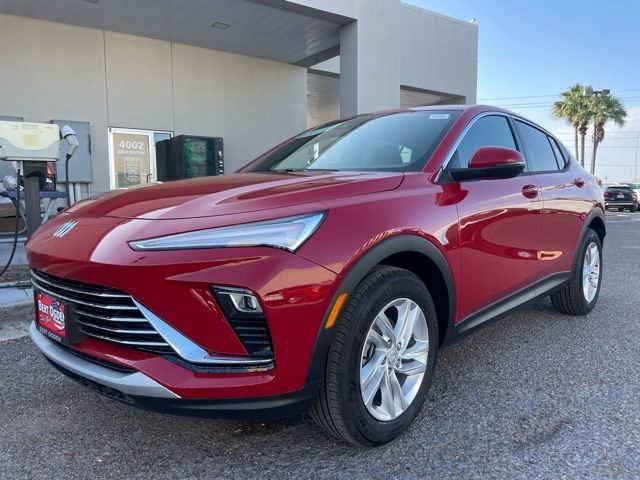 The 2026 Buick Envista Preferred FWD offers a blend of advanced safety features, comfort, and technology. With an ECOTEC 1.2L Turbo engine and a host of convenience and safety packages, this new SUV is designed for both driver and passenger comfort. The interior features Ebony seating and trim, while the exterior is Brilliant Red. The vehicle is equipped with an ultrawide 11" diagonal HD color touchscreen, wireless Apple CarPlay and Android Auto, and a range of safety technologies. The price includes a $750 Bonus Cash and $500 GM Military Offer.