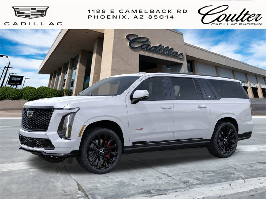 Coulter Phoenix has sold Cadillac's in Arizona since 1923. Shop Coulter - Trust Coulter. 2026 Cadillac Escalade ESV V-Series Vibrant White Tricoat 6.2L V8 Supercharged AWD 10-Speed Automatic with Overdrive 11/17 City/Highway MPG. YEAR MAKE MODEL, LOW MILES, MILES ONLY, AWD. All prices are plus, tax, title, license, $599 doc fee and market adjustment. New vehicles are installed with $1,991 dealer ads (KeyFetch, window tint, Xzilon, Clear Guard and nitrogen). Used vehicles are sold with $1,490 dealer ads (Coulter Value Package and etch) and $695 vehicle preparation and inspection fee - total $2,185. Coulter Cadillac Phoenix has onsite finance experts that can find the best finance rates and terms, including credit unions.