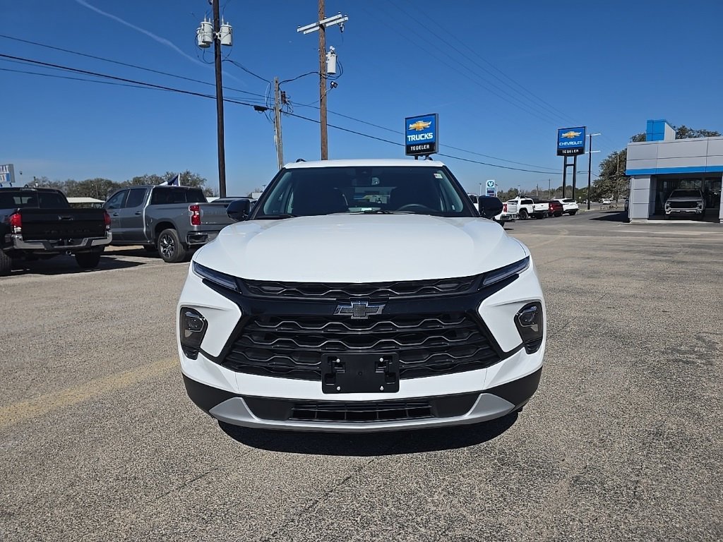 Delivers 29 Highway MPG and 22 City MPG! This Chevrolet Blazer boasts a Turbocharged Gas I4 2.0L/ engine powering this Automatic transmission. ENGINE, 2.0L TURBO, 4-CYLINDER, SIDI DOHC WITH VARIABLE VALVE TIMING (VVT) with Stop/Start (228 hp (170 kW) at 5000 rpm, 258 lb-ft of torque [350 N-m]) @ 1500-4000 rpm) (STD), Wireless Apple CarPlay/Wireless Android Auto, Wipers, front variable-speed, intermittent with washers. This Chevrolet Blazer comes equipped with these options: Wiper, rear intermittent with washer, Windows, power with driver Express-Up/Down and front passenger and rear seat passengers Express-Down, Wi-Fi Hotspot capable (Terms and limitations apply. See onstar.com or dealer for details.), Wheels, 18" Grazen Metallic aluminum, Wheel, spare, 18" steel, Visors, driver and front passenger illuminated vanity mirrors covered, Vehicle health management provides advanced warning of vehicle issues, USB data ports, 2, one type-A and one type-C located within the instrument panel, USB charging-only ports, 2, one type-A and one type-C, located on rear of center console, Umbrella holders, driver and front passenger doors. Stop by today. Come in for a quick visit at Tegeler Chevrolet Buick, 1260 US Hwy 84 W, Goldthwaite, TX 76844 to claim your Chevrolet Blazer!