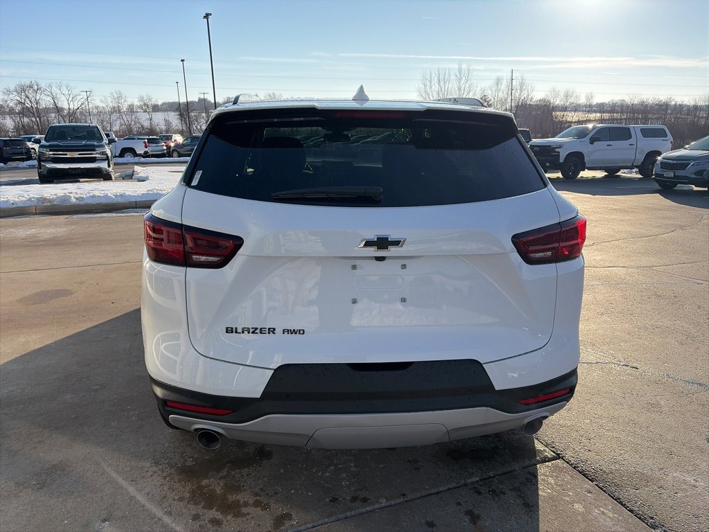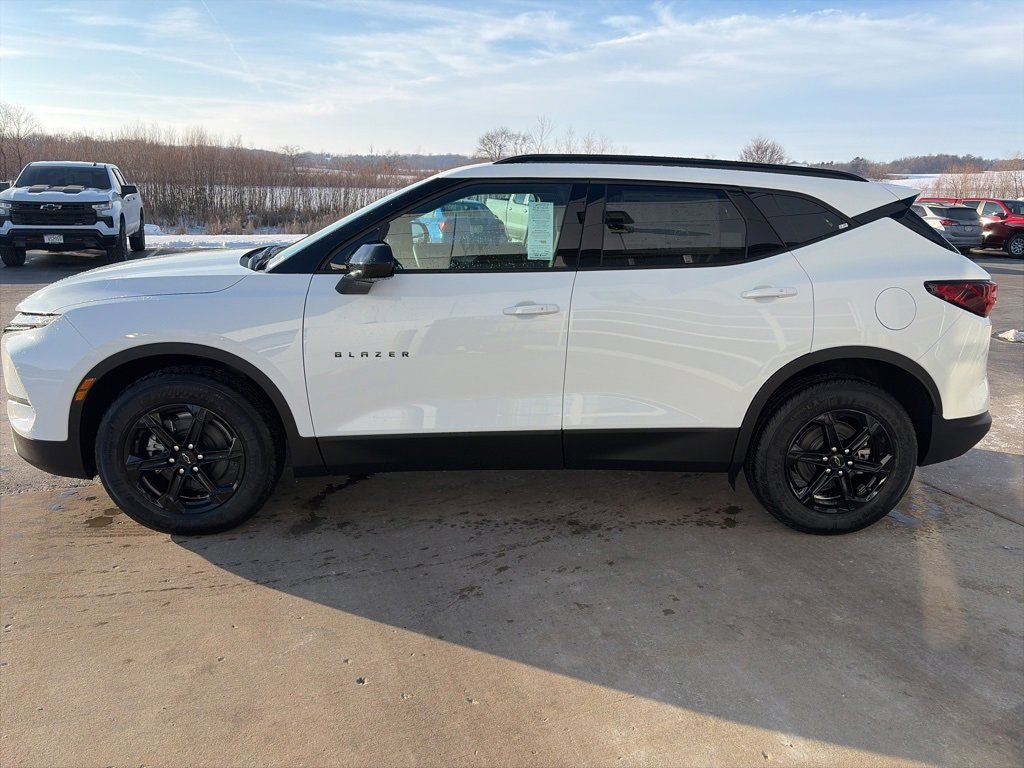 Summit White 2026 Chevrolet Blazer 2LT All Wheel Drive. The vehicle features a bright and intense design with a 2.0L engine, and comes with a full range of safety features. The Blazer is a new model with advanced technology and comfort.